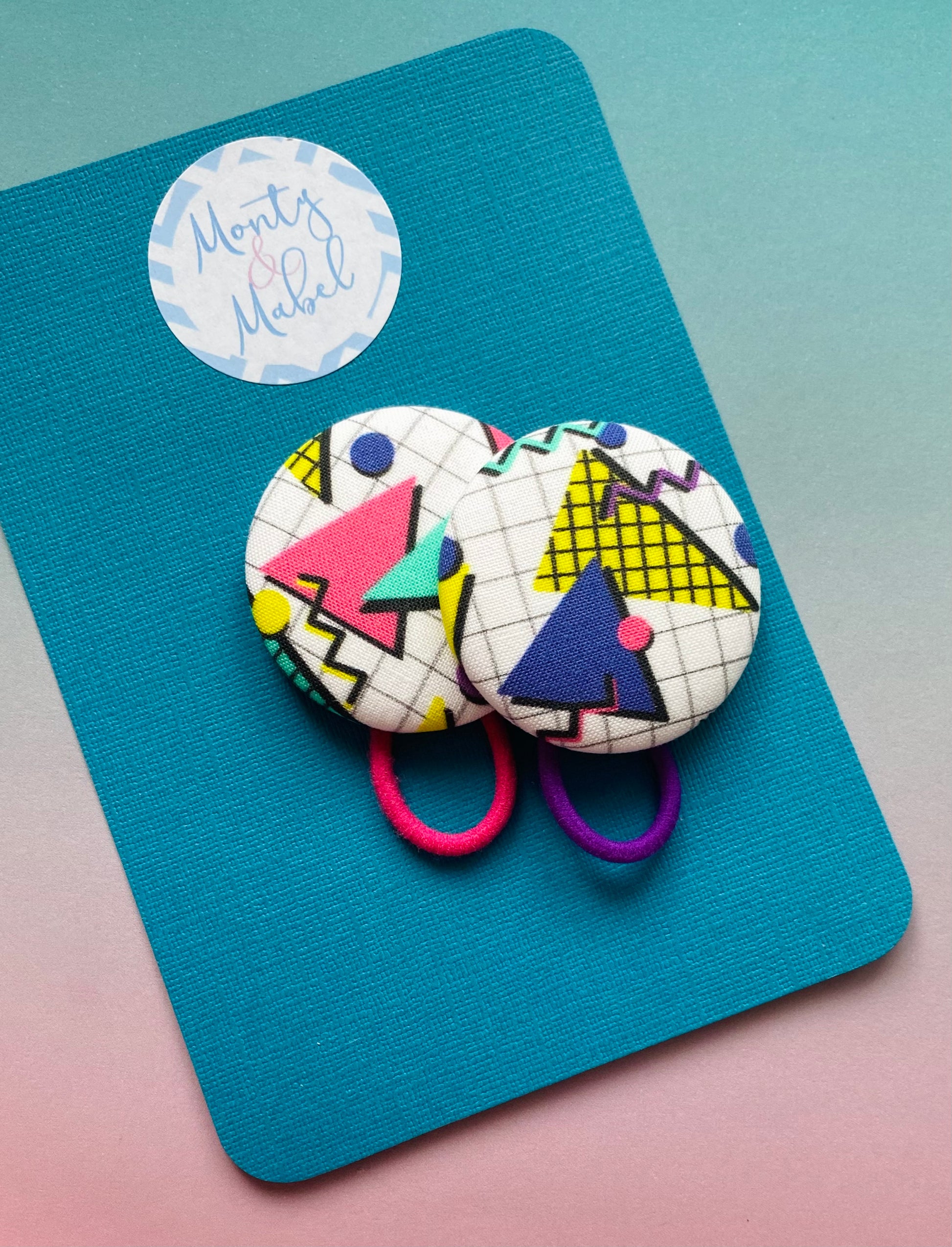 Tiny Bobbles are 22mm on short elastic ties (best for very fine hair)