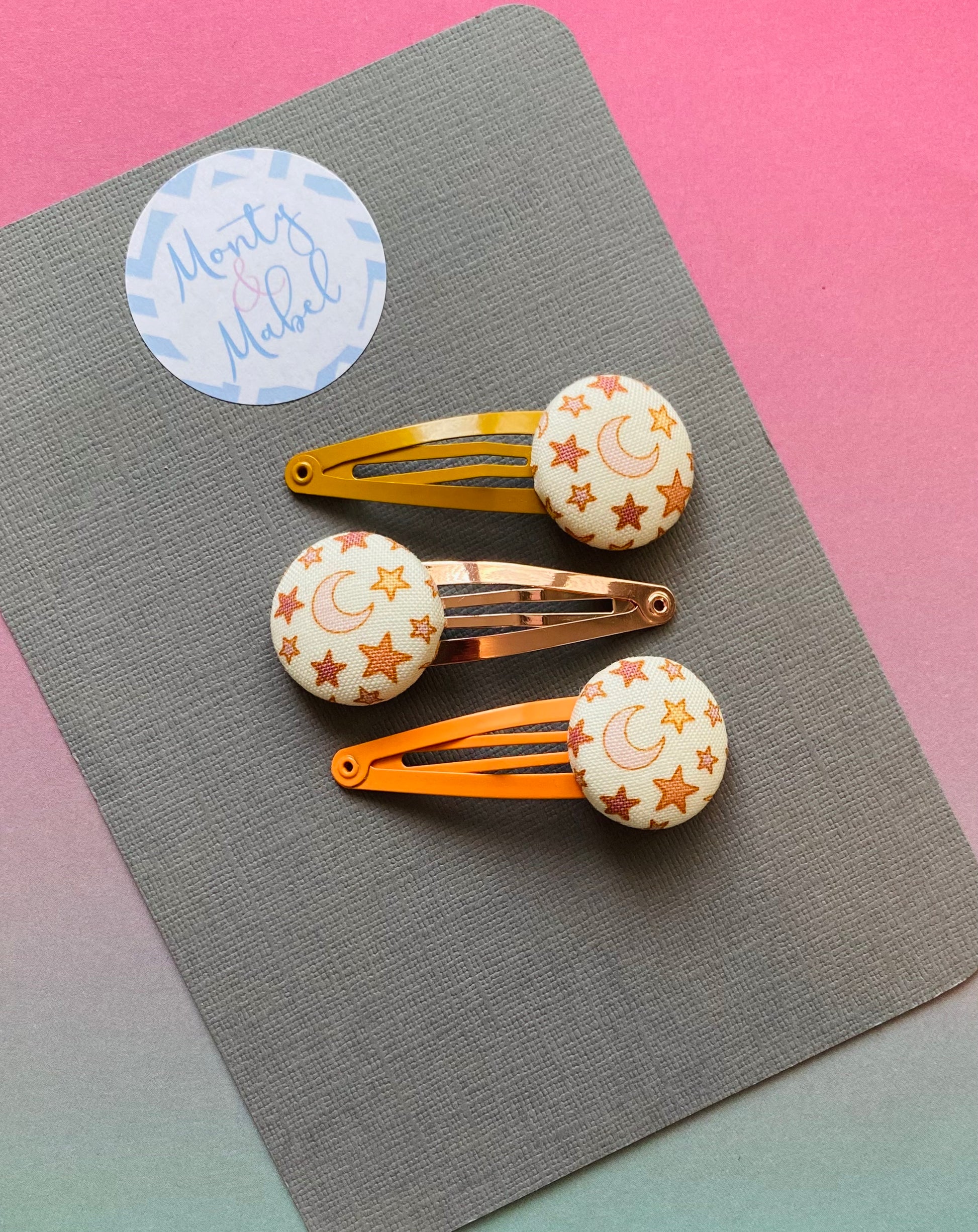 Everything is made to order, if you would like a different coloured clip to the photo please message Monty & Mabel on Facebook or add a note to your order.