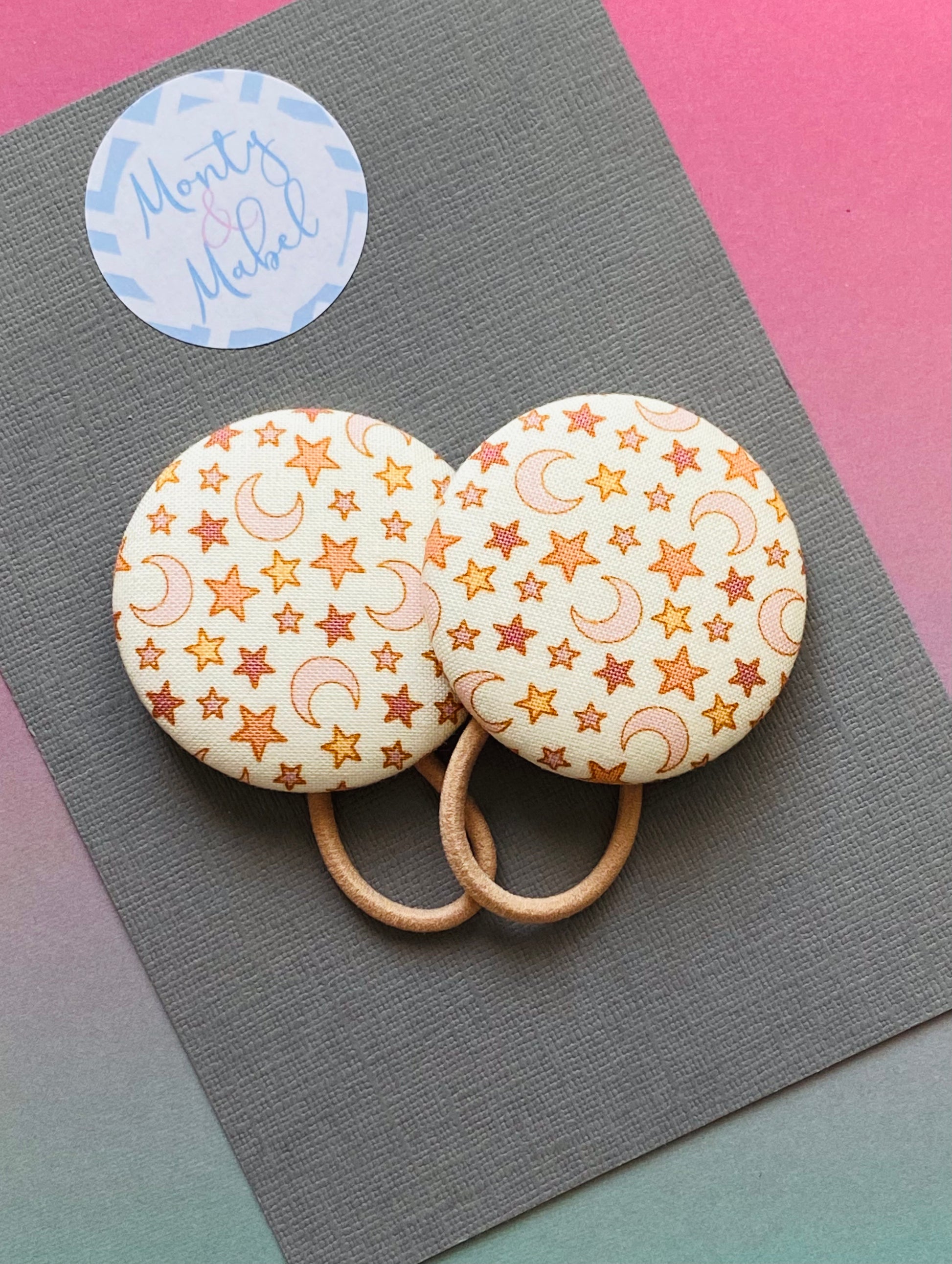 A stunning fabric with autumnal orange moons and stars, it works well in Large Bobbles, Small Bobbles, Standard & Tiny Clips, and all Bow sizes apart from the Diddy Bow Fringe Clips.