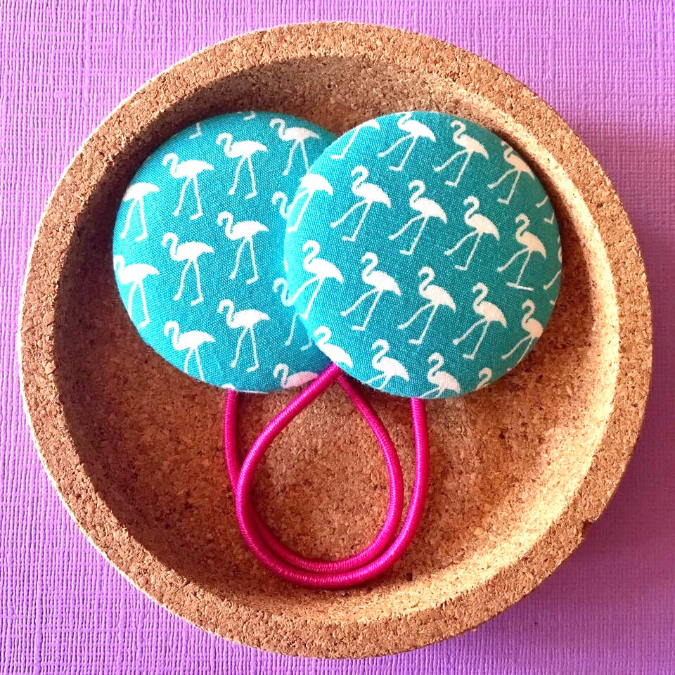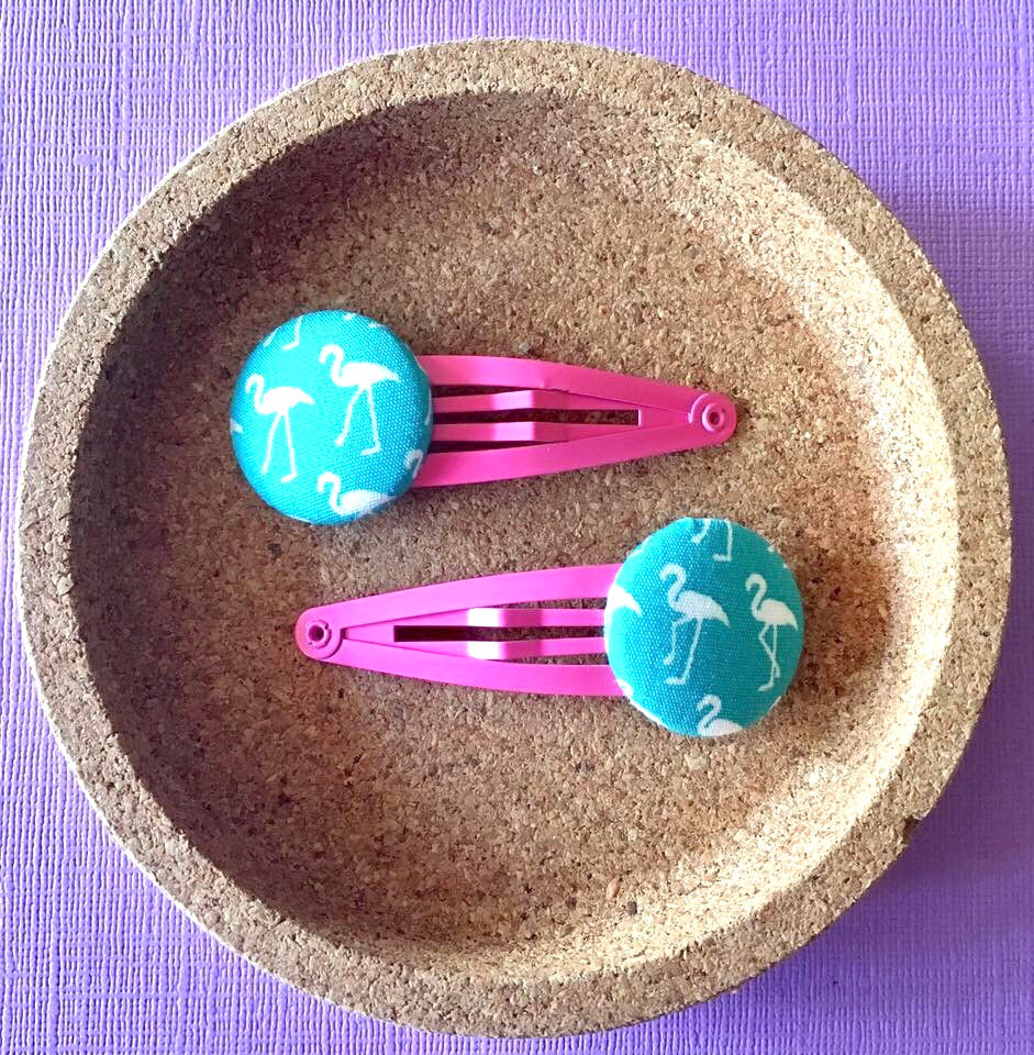 Tiny white flamingoes on a bright teal blue background. They work well in Large Bobbles, Small Bobbles, Standard & Tiny Clips, and all Bow sizes including the Diddy Bow Fringe Clips.