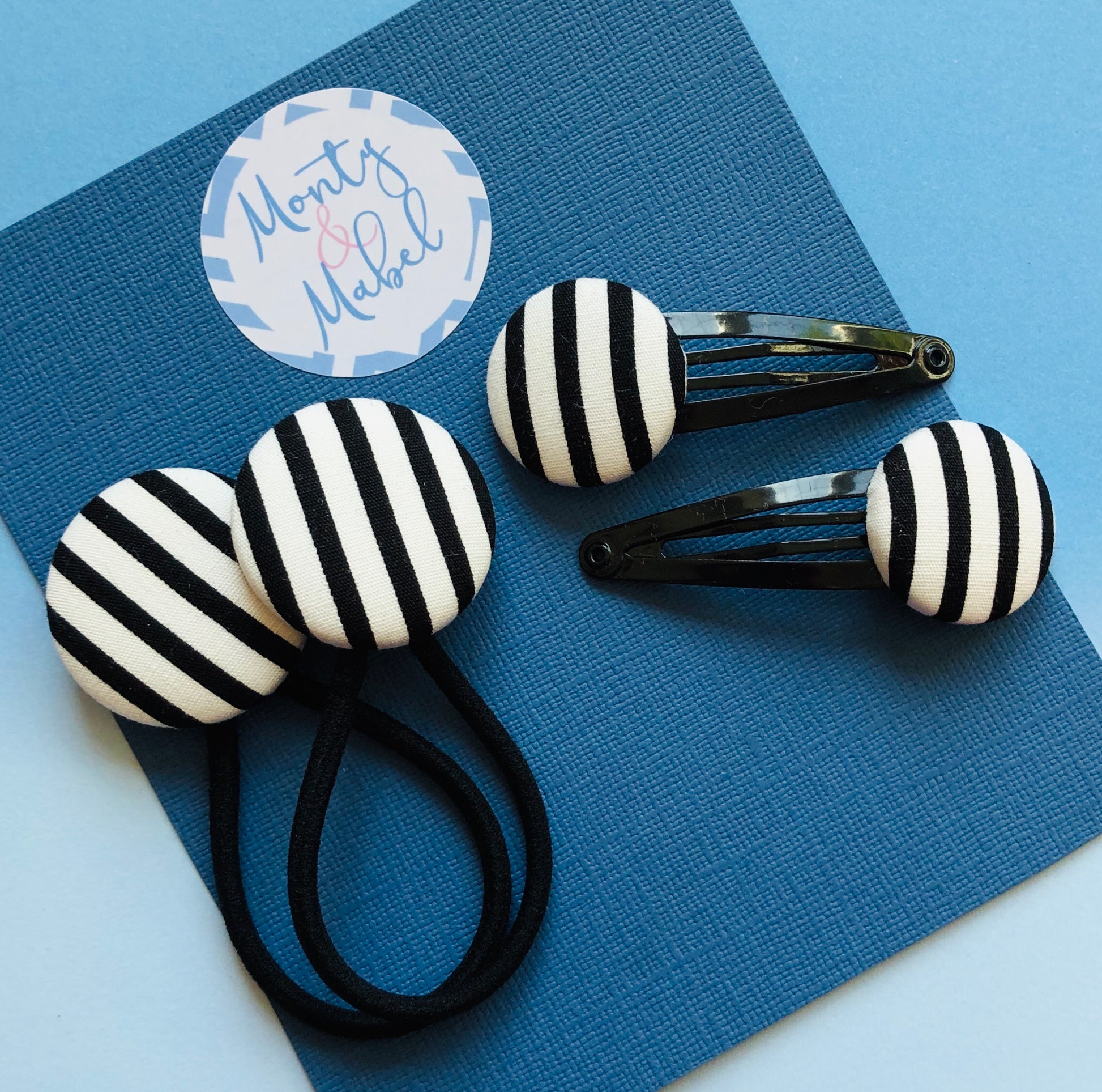 Monochrome stripes, which work well in Large Bobbles, Small Bobbles, Standard & Tiny Clips, and all Bow sizes including the Diddy Bow Fringe Clips.