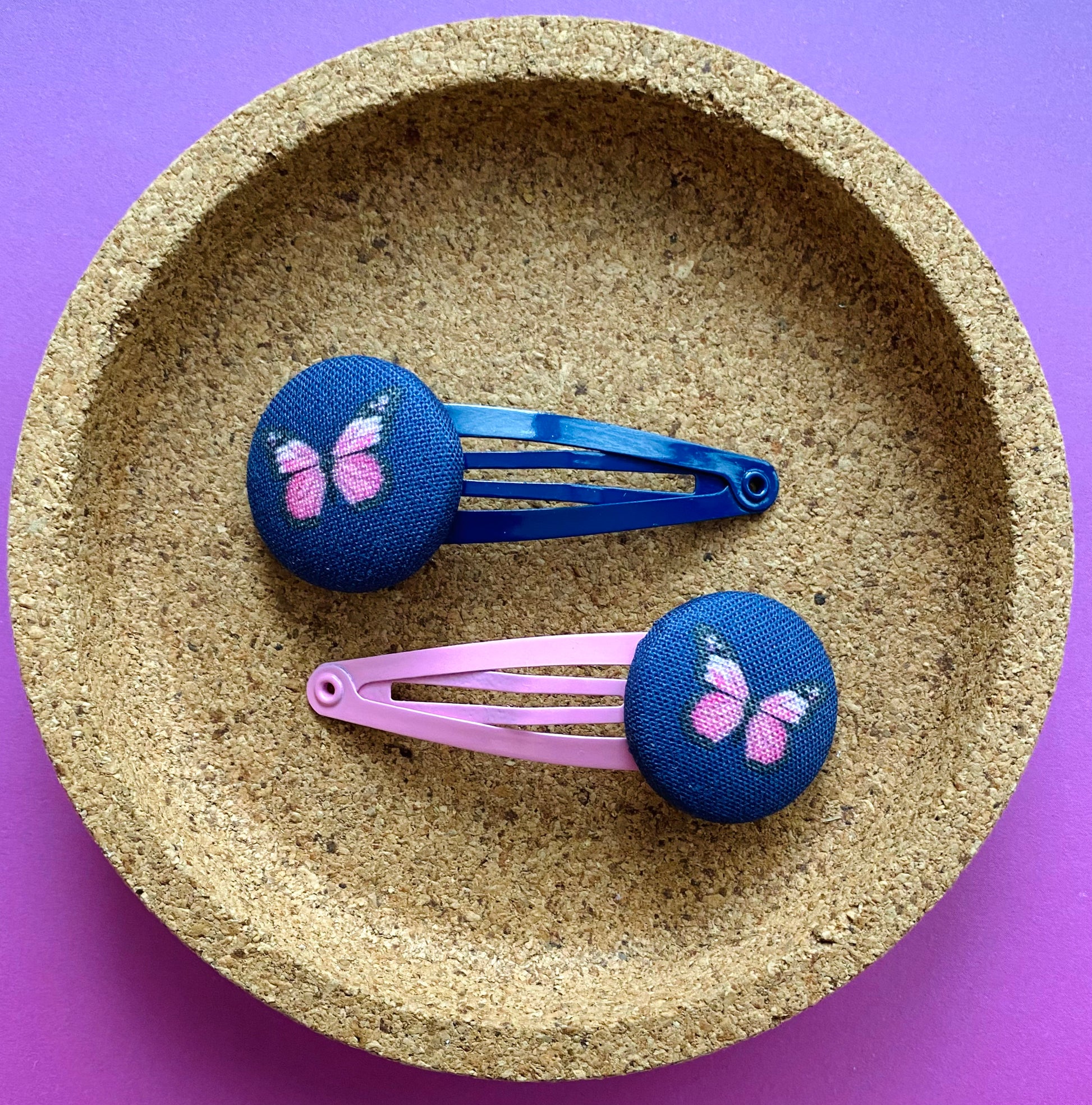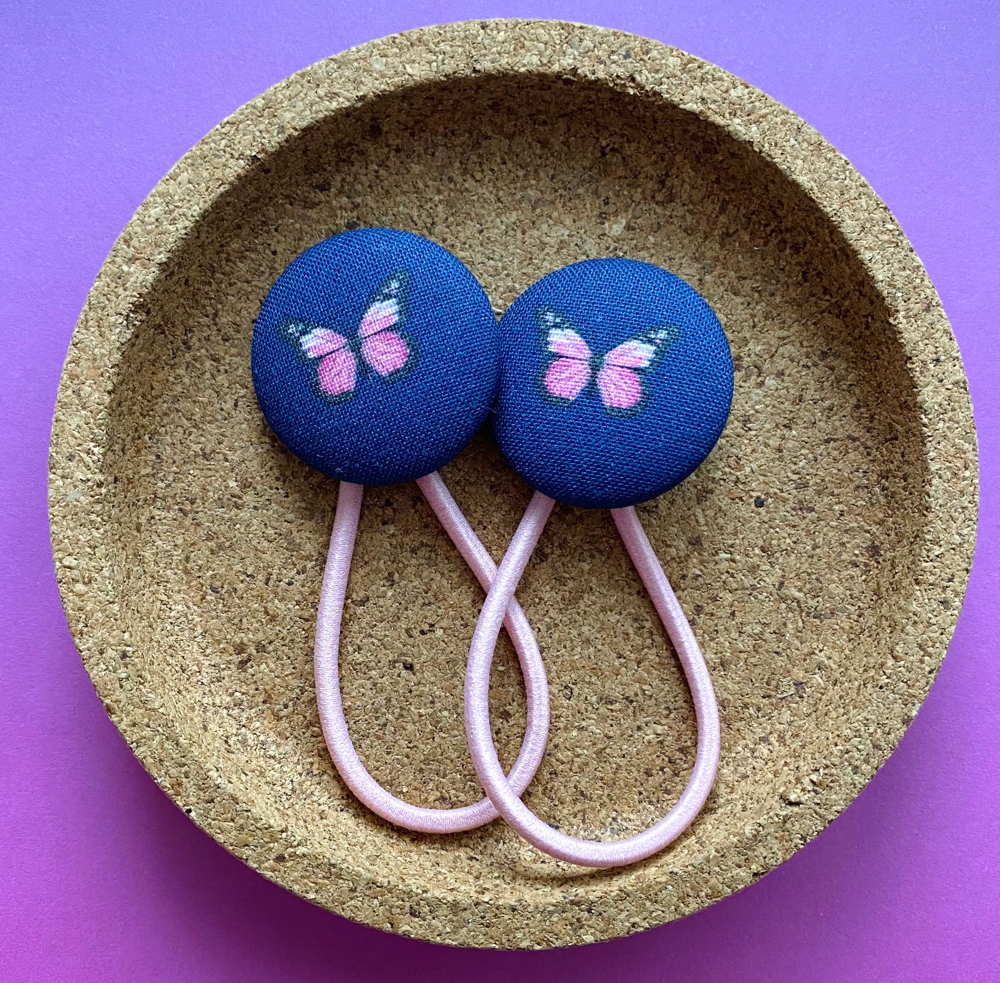 Little pink butterflies on a dark navy background. A sweet match for JoJo’s AW21 butterfly range.