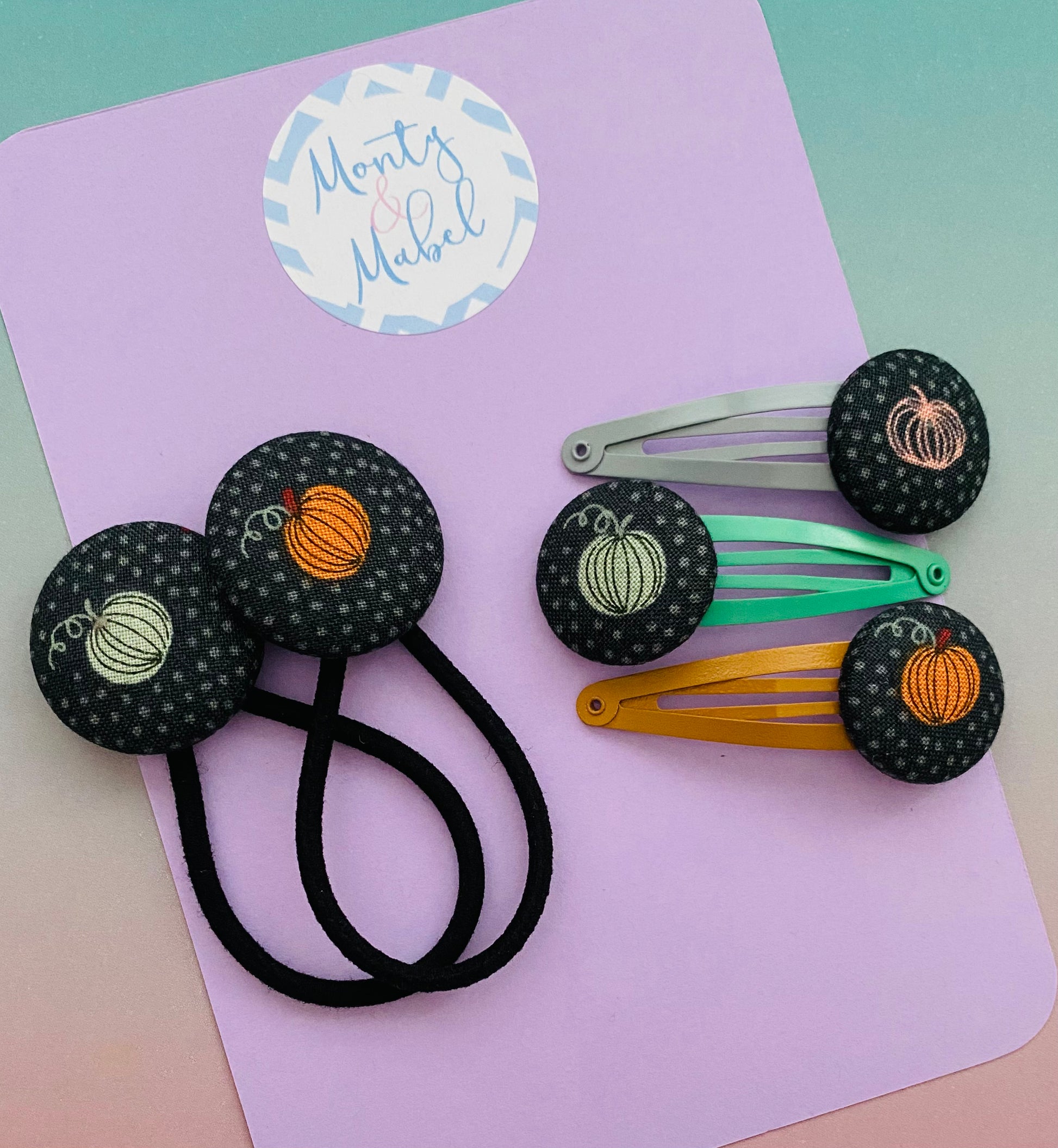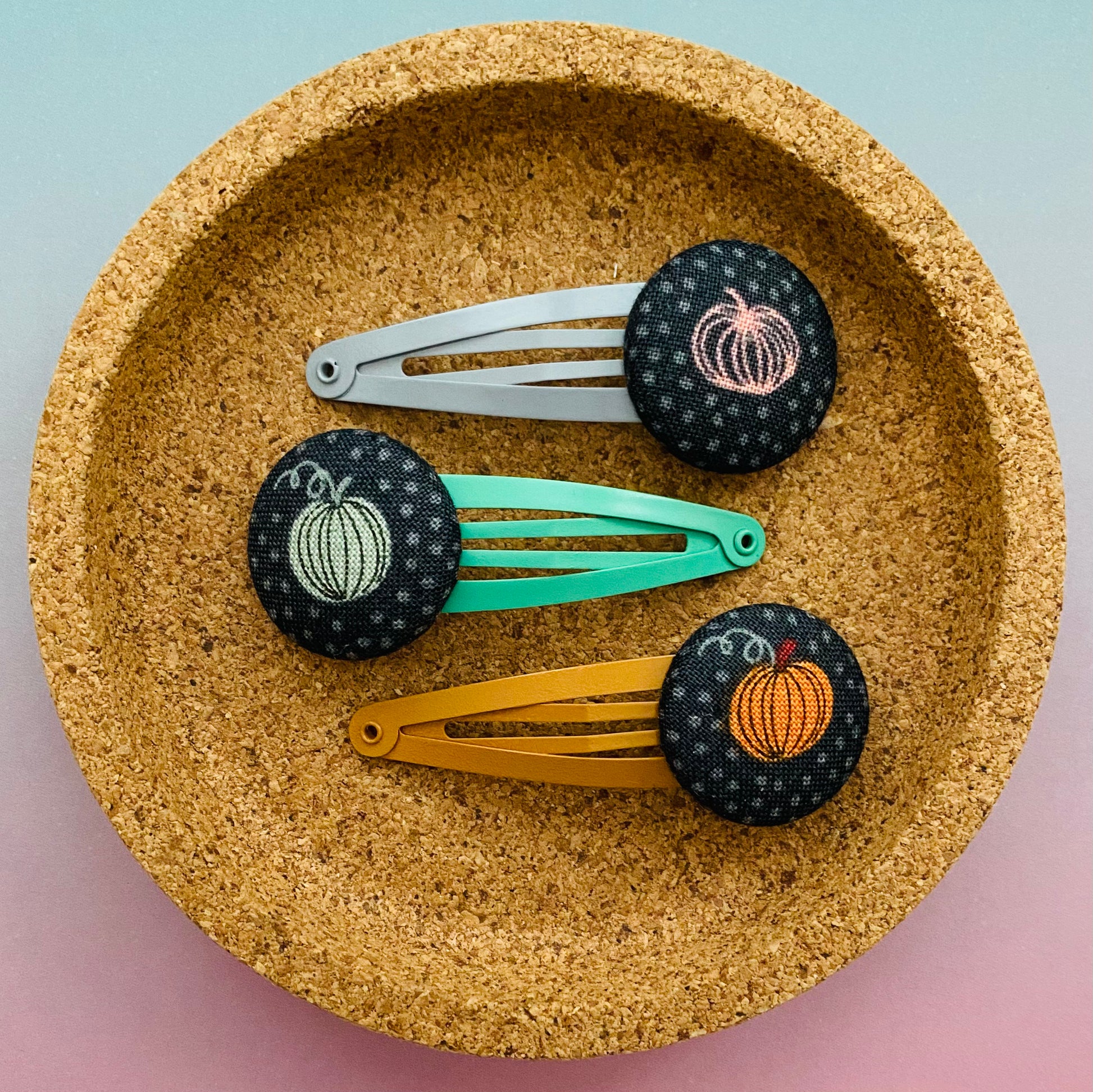Little autumnal pumpkins on a dotty background. They work well in Small Bobbles, Standard and Tiny Clips.