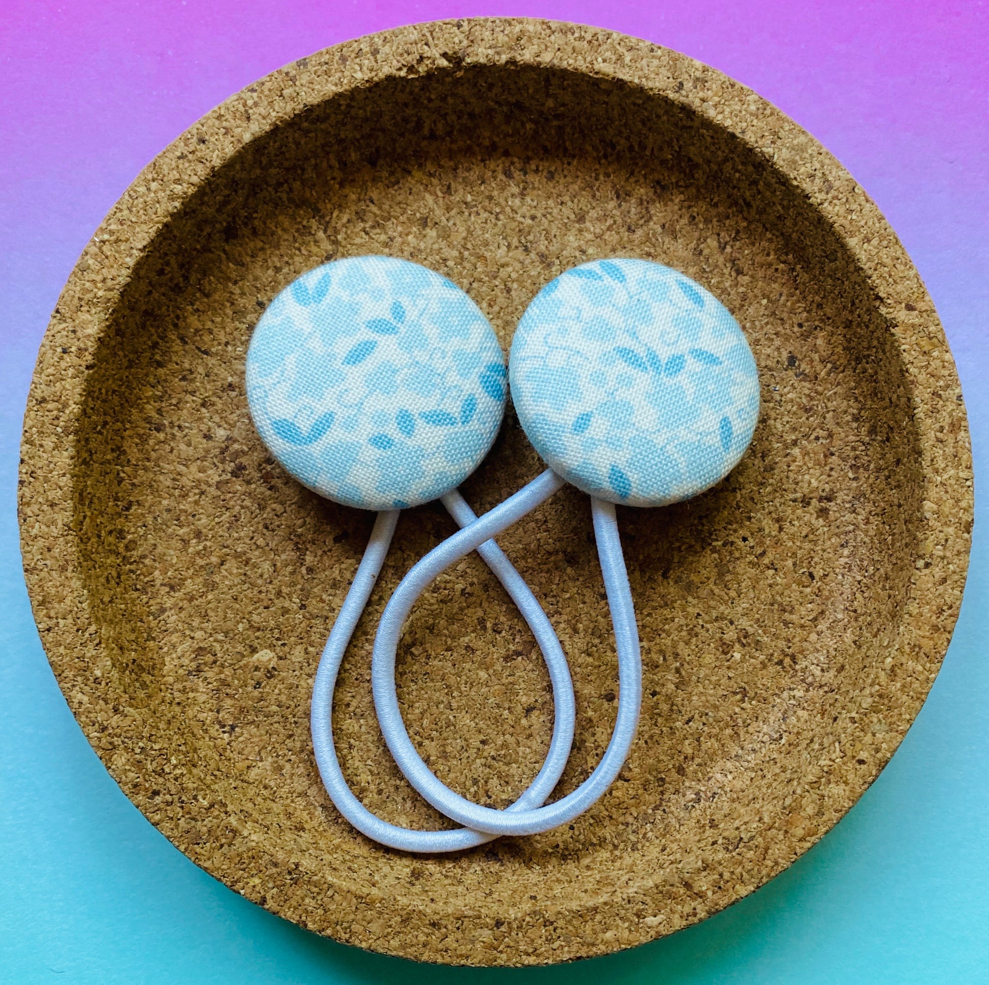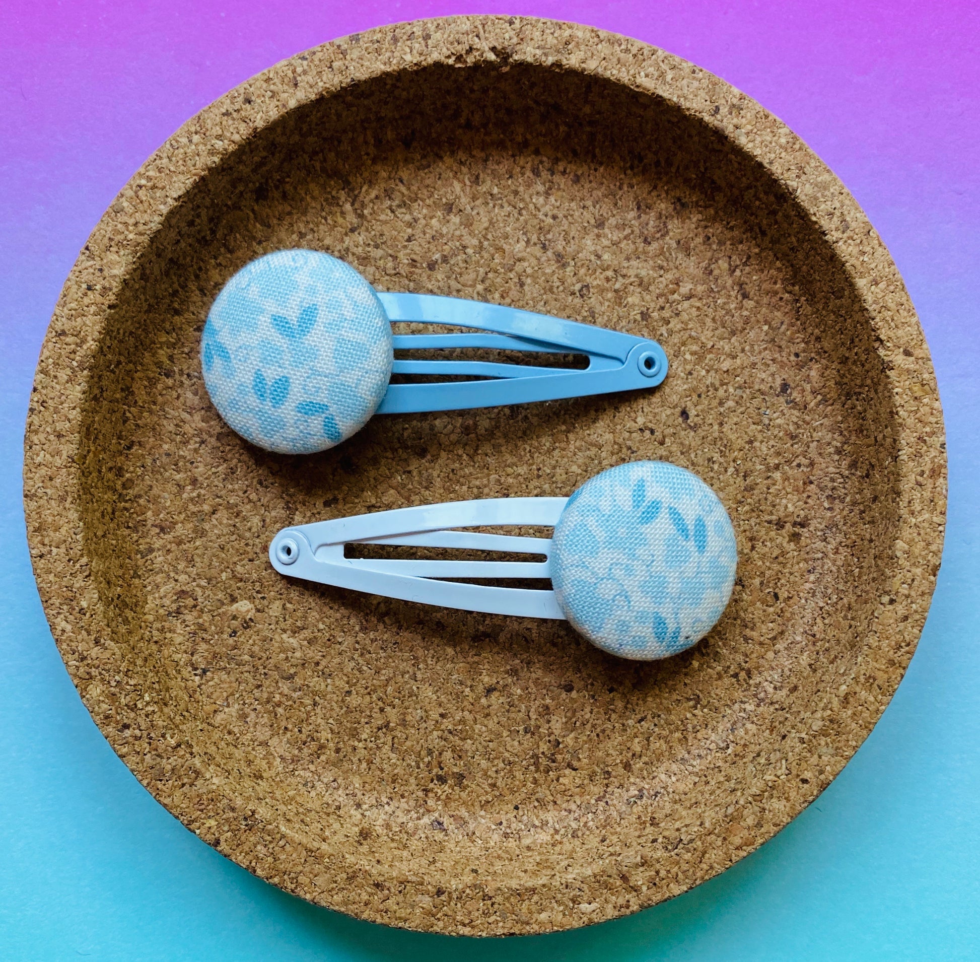 A light & airy vintage pale blue floral pattern, which works well in Large Bobbles, Small Bobbles, Standard & Tiny Clips, and all Bow sizes including the Diddy Bow Fringe Clips