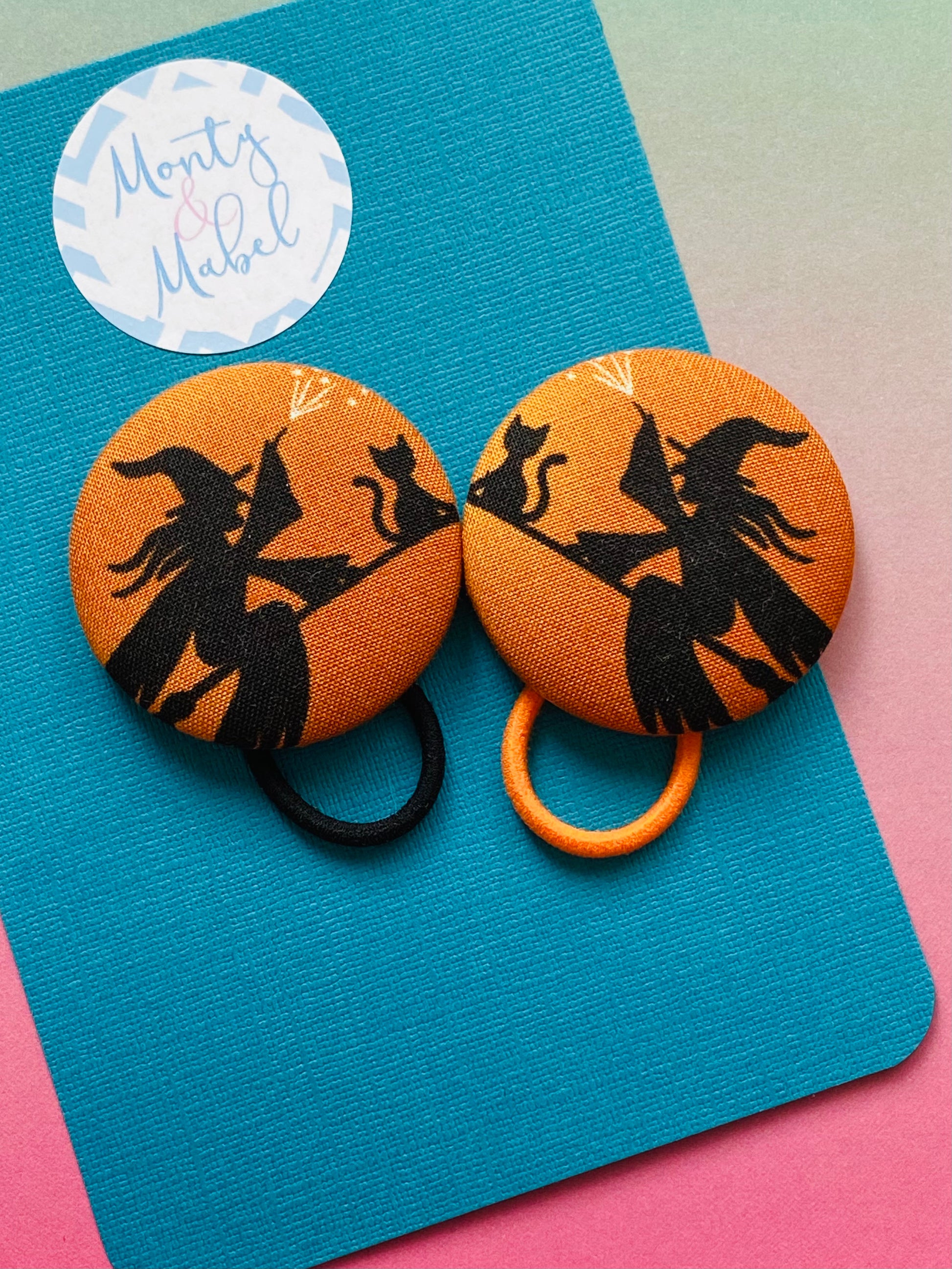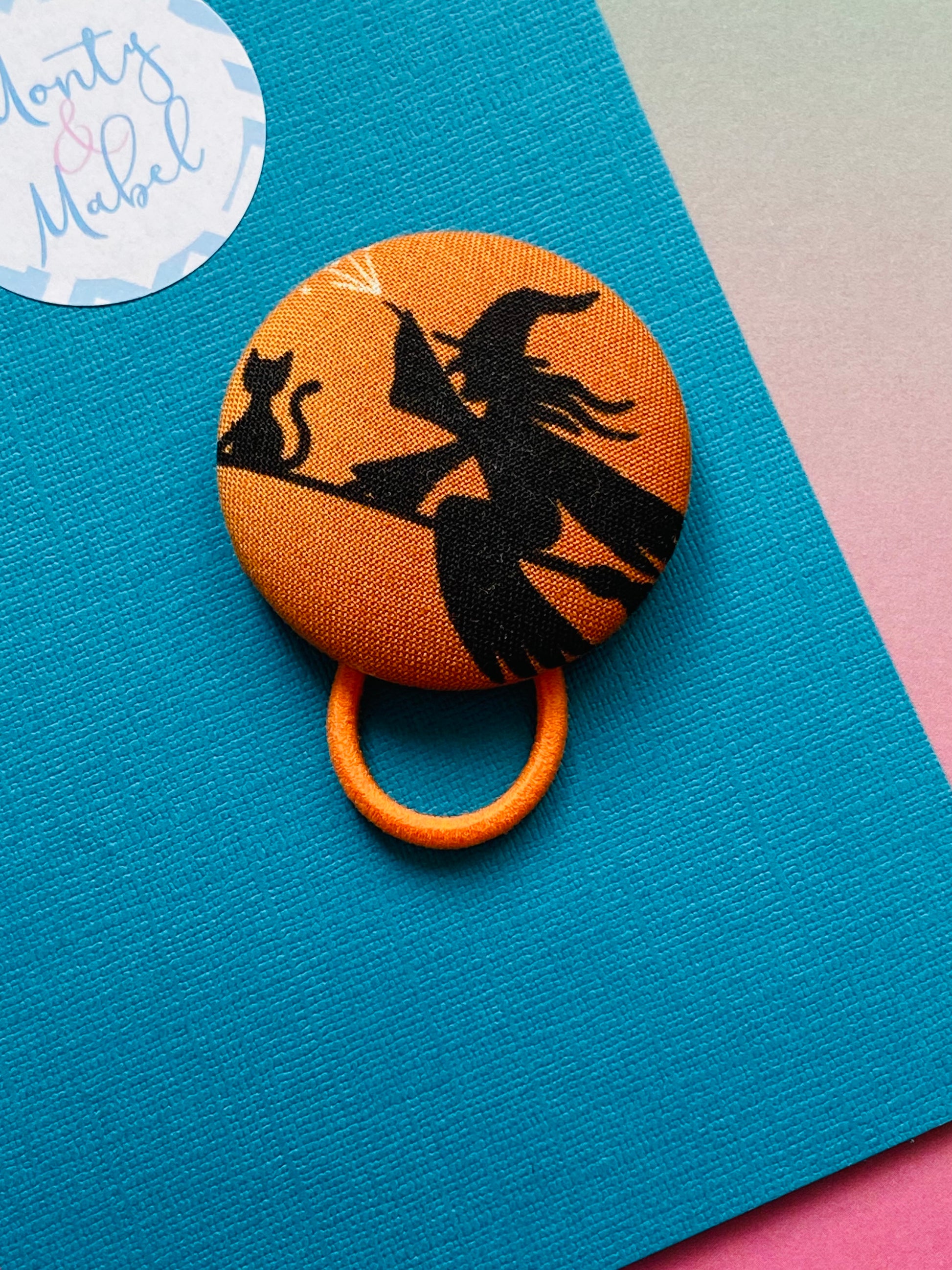 Flying witches on a rich orange background, suitable for large bobbles only.