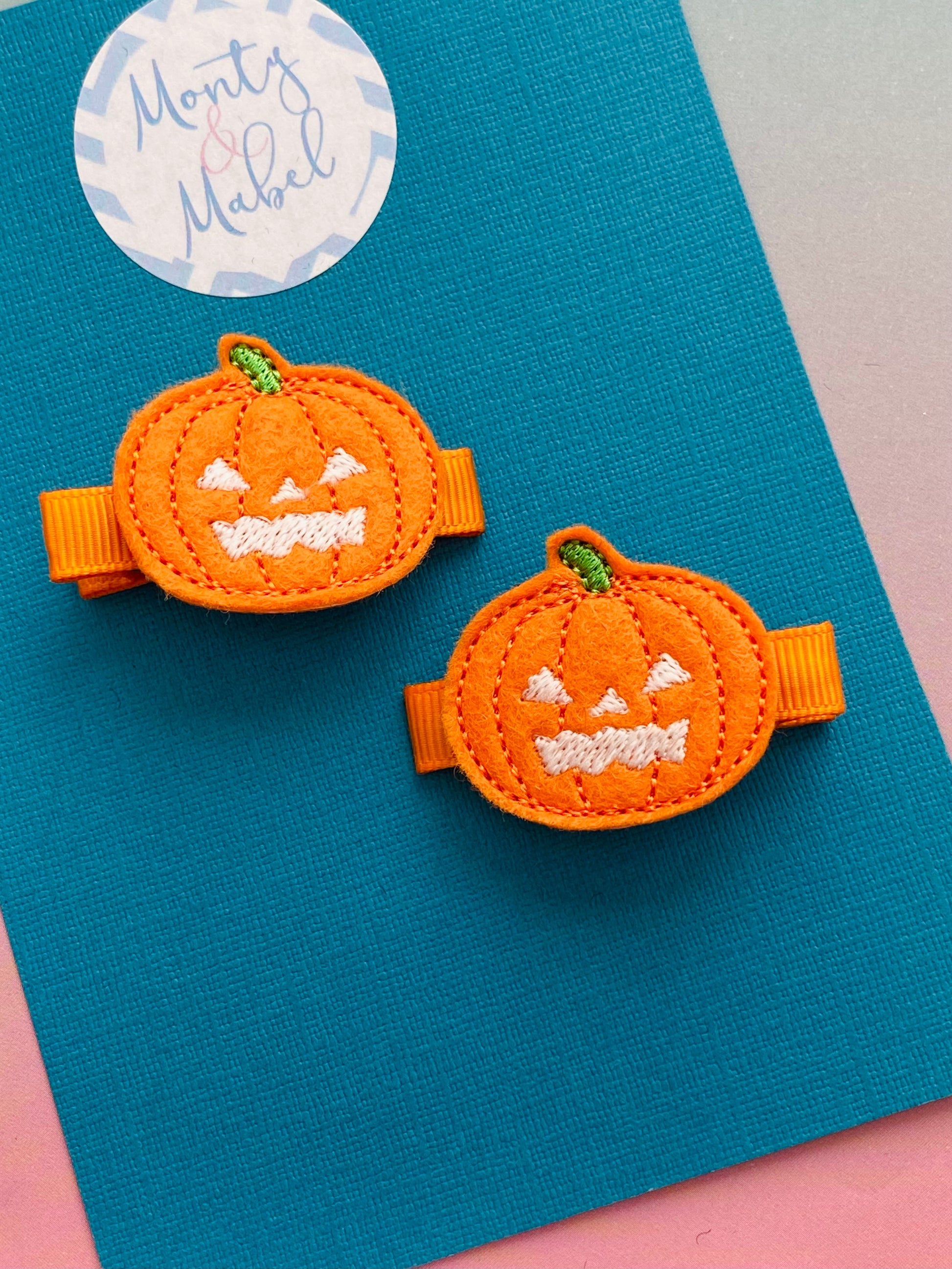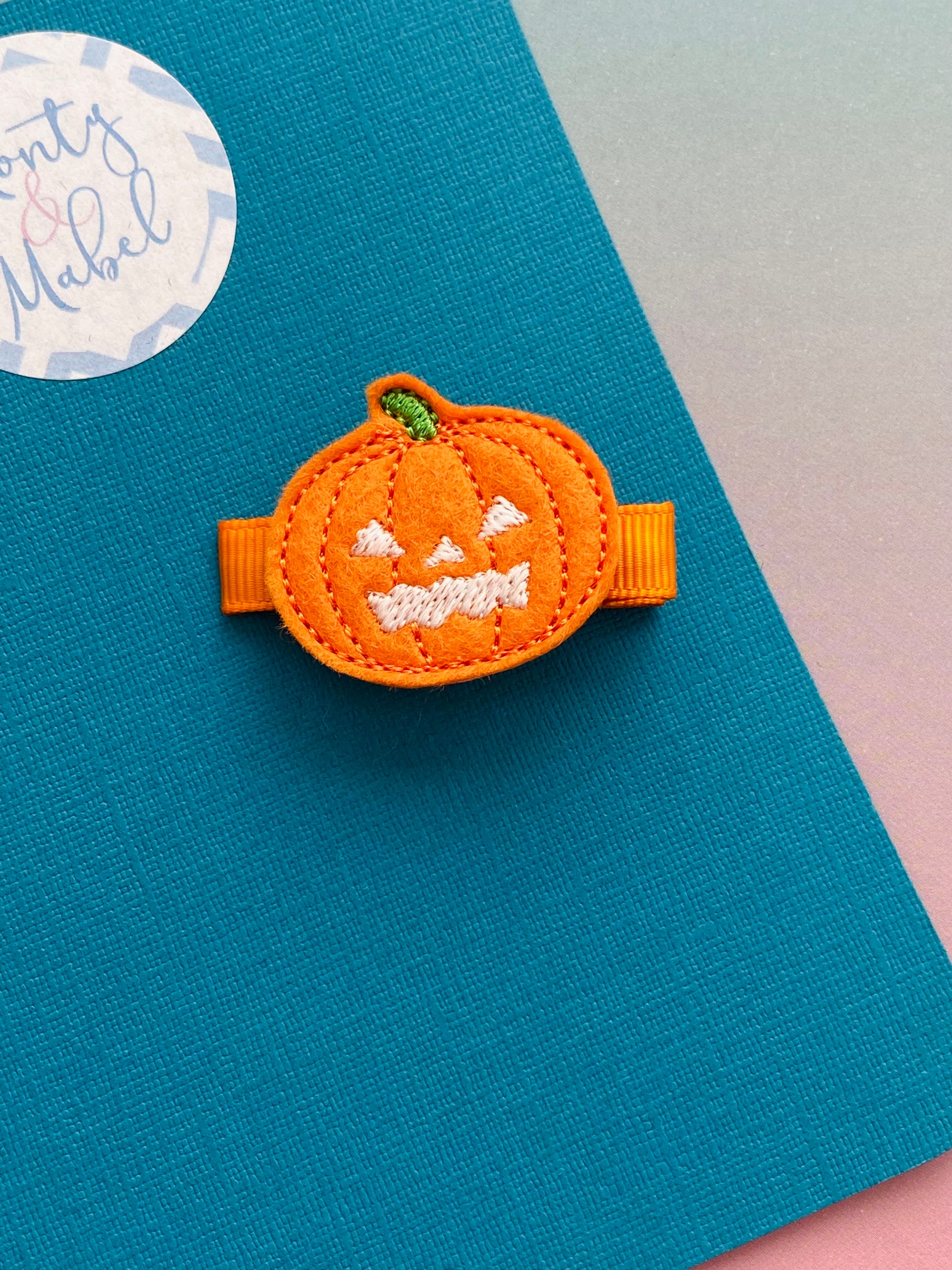 Spooky pumpkin Feltie with glow in the dark thread for the eyes and mouth!
