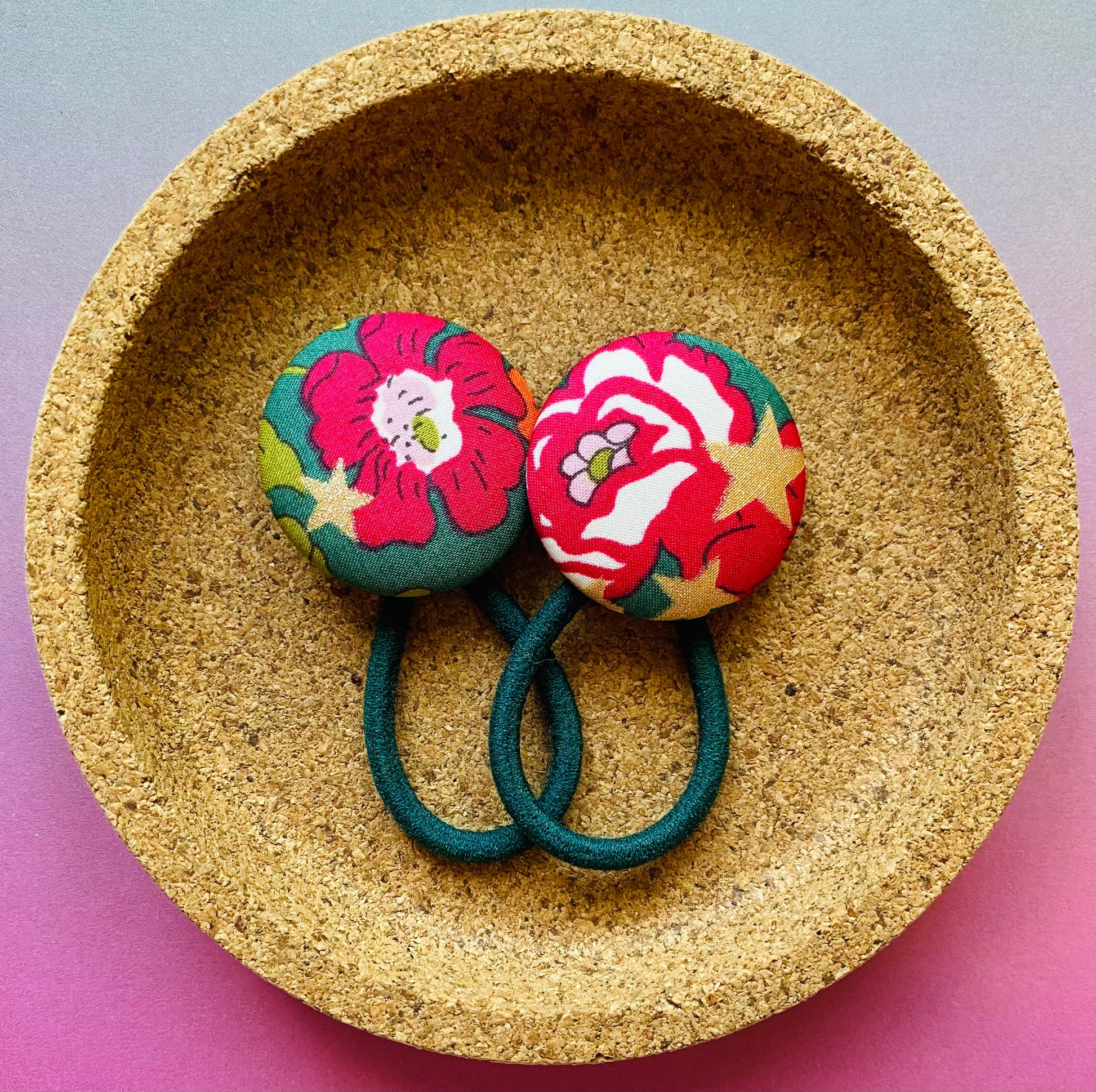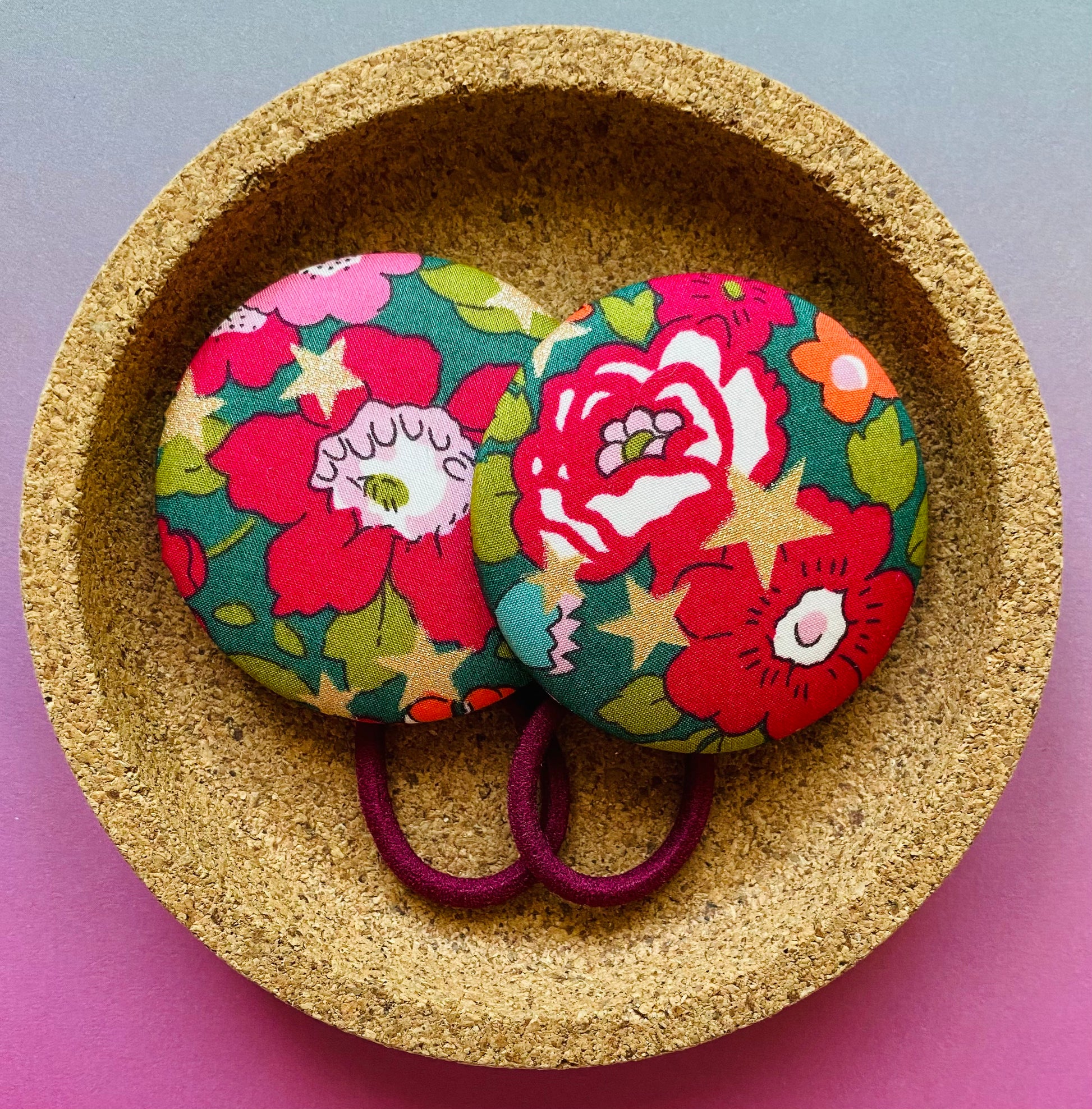 An absolutely stunning festive Liberty Betsy floral with rich red, green and gold glittery stars!