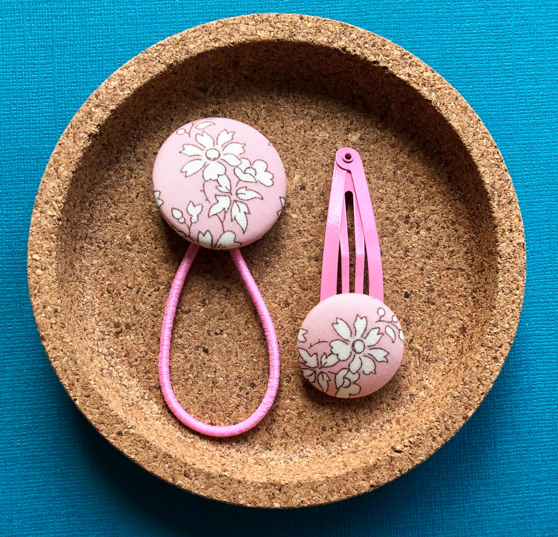 Beautiful delicate pale pink floral which works well in Large Bobbles, Small Bobbles, Standard & Tiny Clips, and all Bow sizes including the Diddy Bow Fringe Clips.