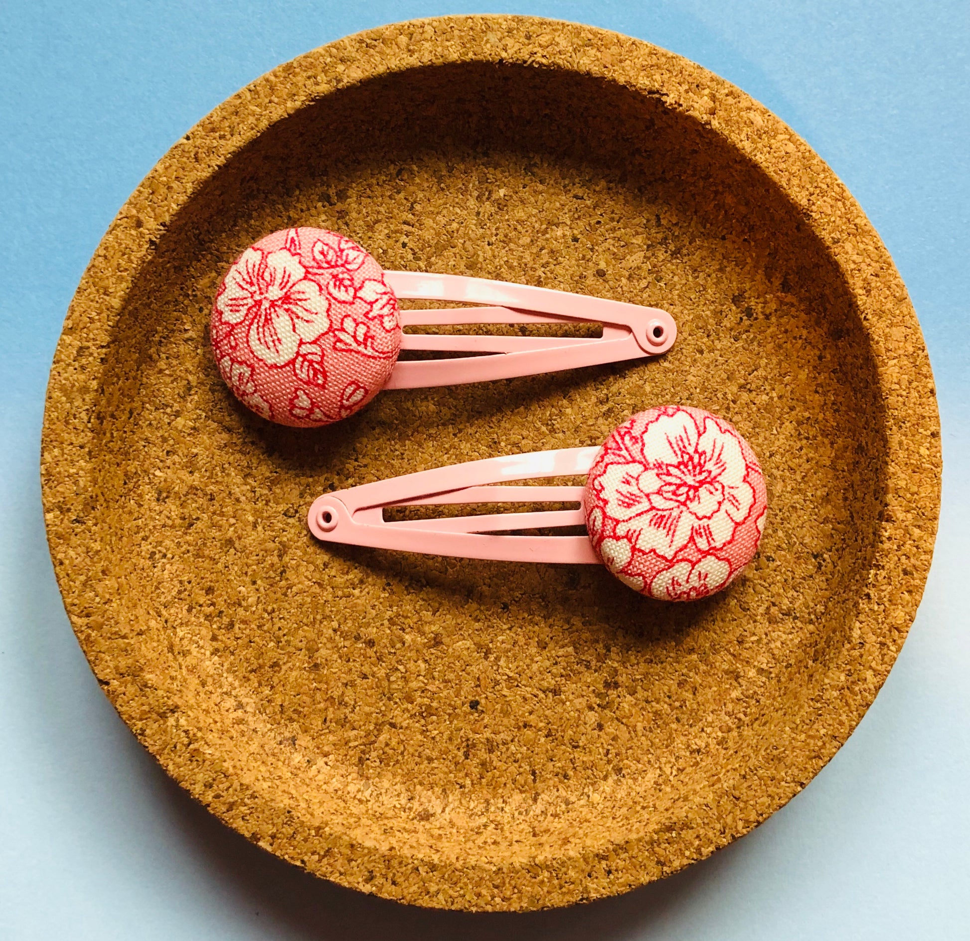 Traditional pink floral design, which works well in Large Bobbles, Small Bobbles, Standard & Tiny Clips, and all Bow sizes including the Diddy Bow Fringe Clips.