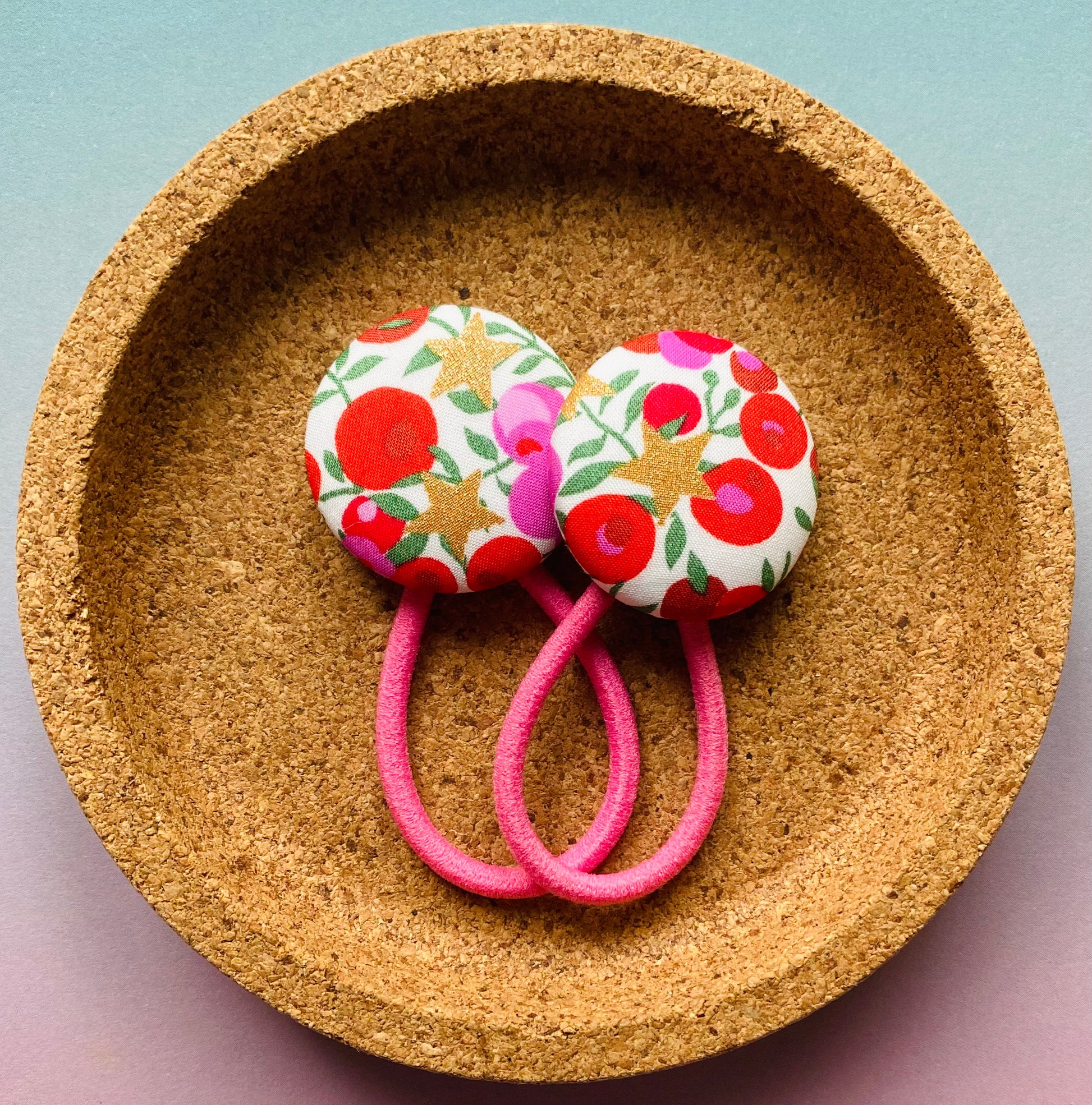 Tiny Bobbles are 22mm on short elastic ties (best for very fine hair)
