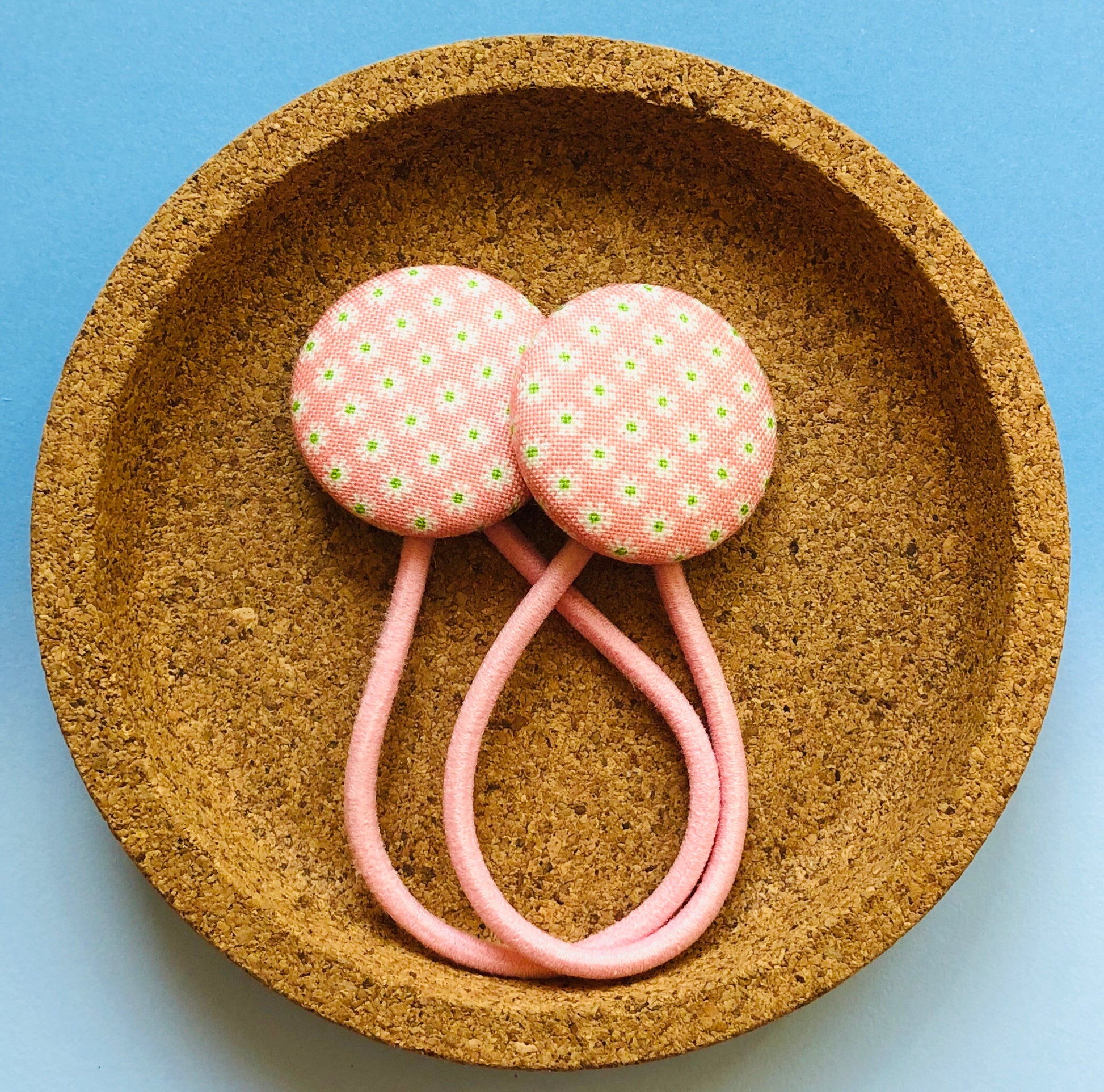 Tiny Bobbles are 22mm on short elastic ties (best for very fine hair)