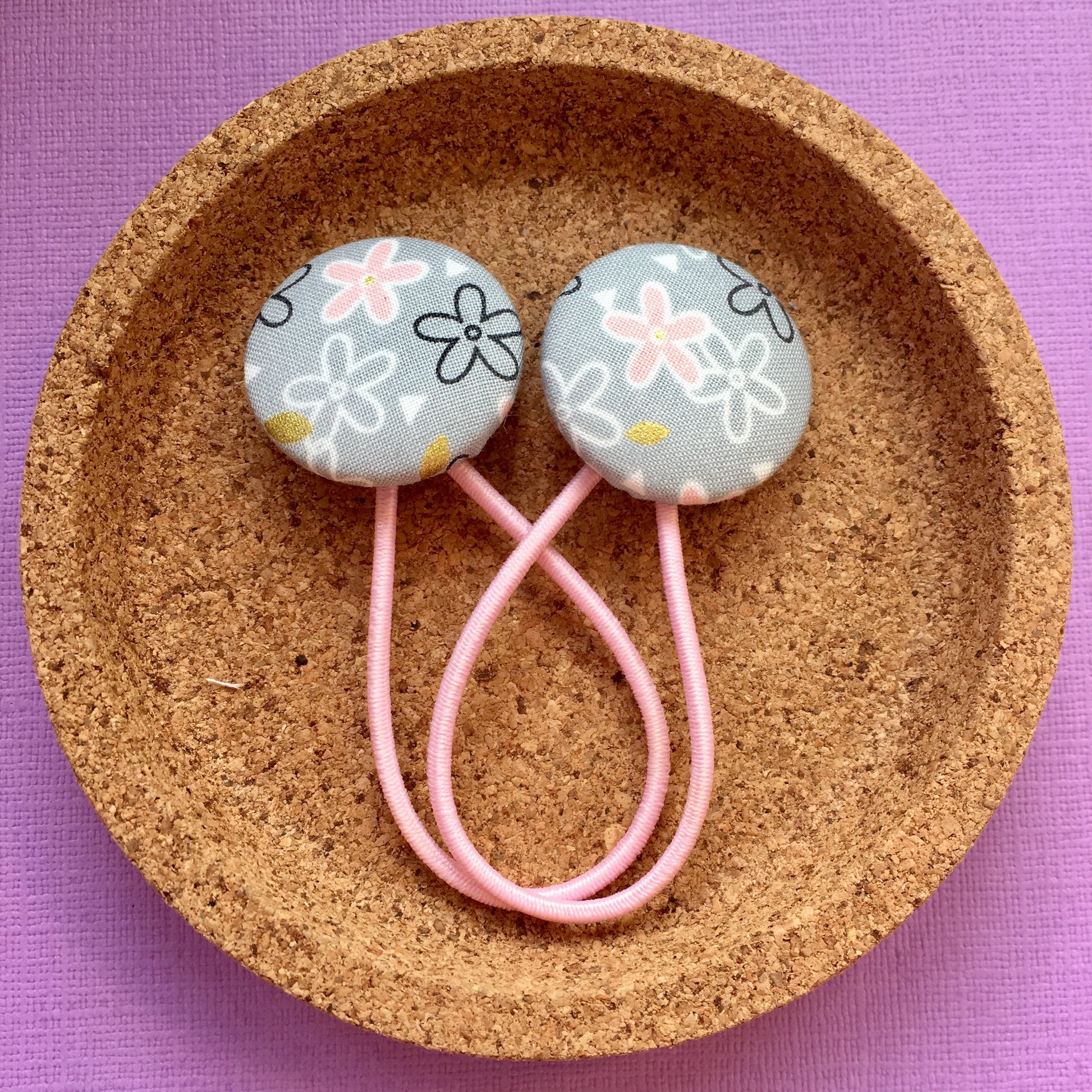 Tiny Bobbles are 22mm on short elastic ties (best for very fine hair)