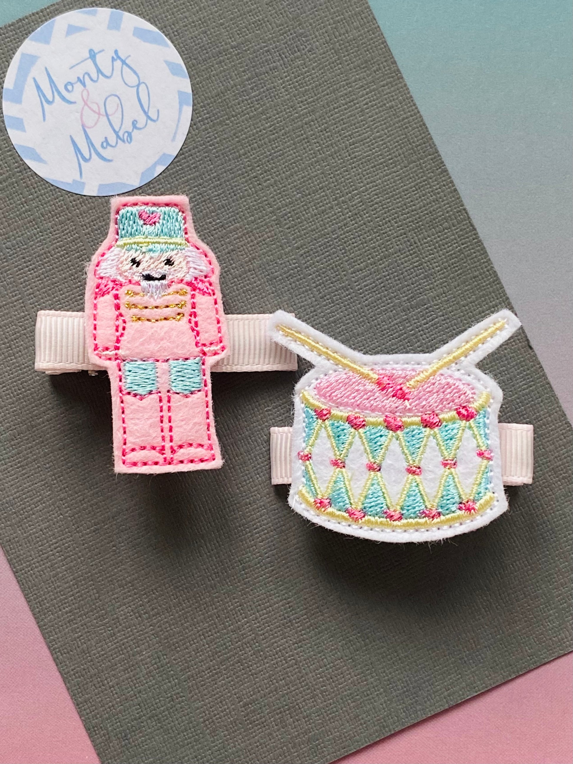 One pair of pastel nutcracker and drum Felties
