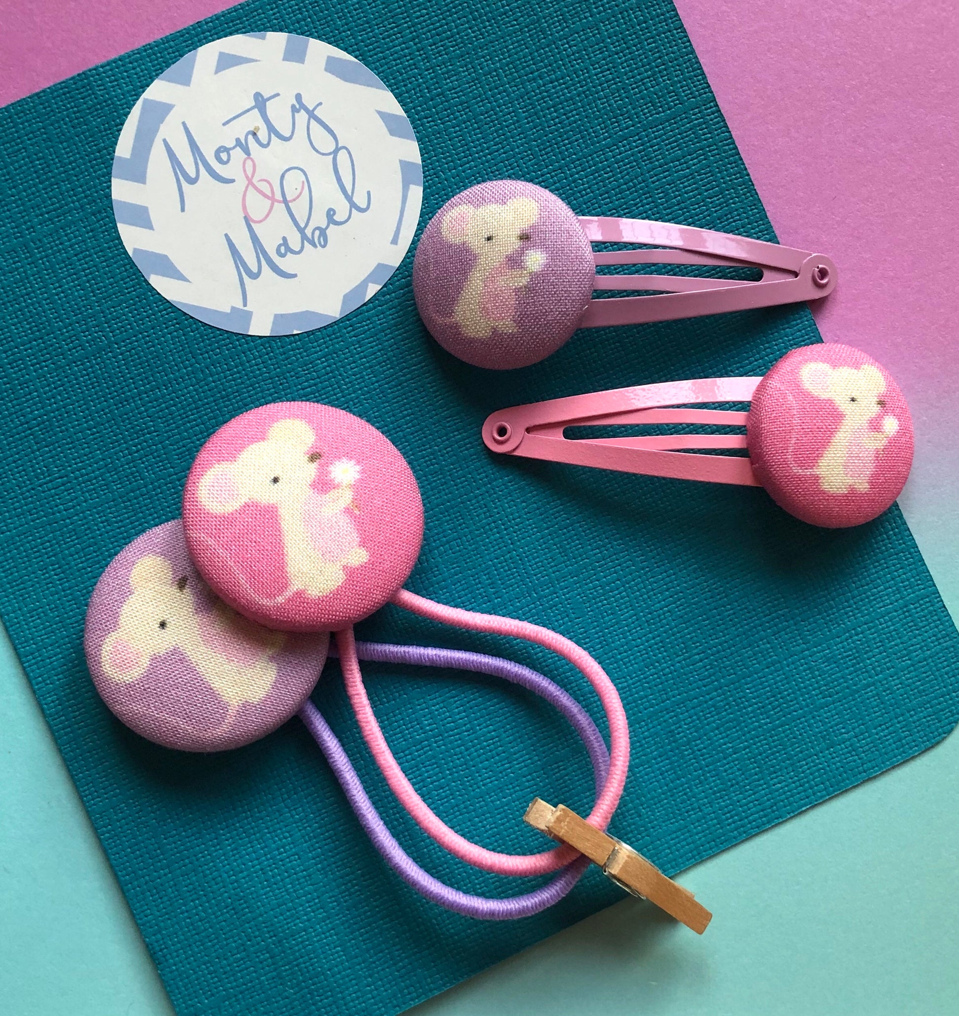 Everything is made to order, if you would like a different coloured clip to the photo please message Monty & Mabel on Facebook or add a note to your order.