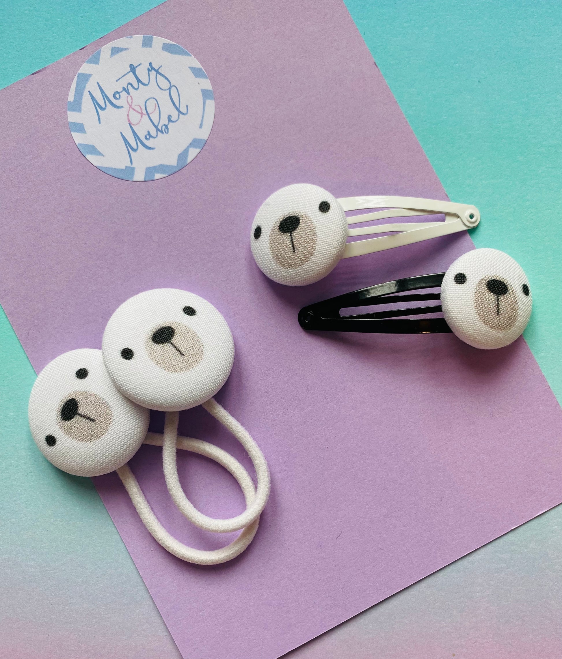 Cute little polar bear faces. Suitable for small & tiny bobbles, and standard clips.