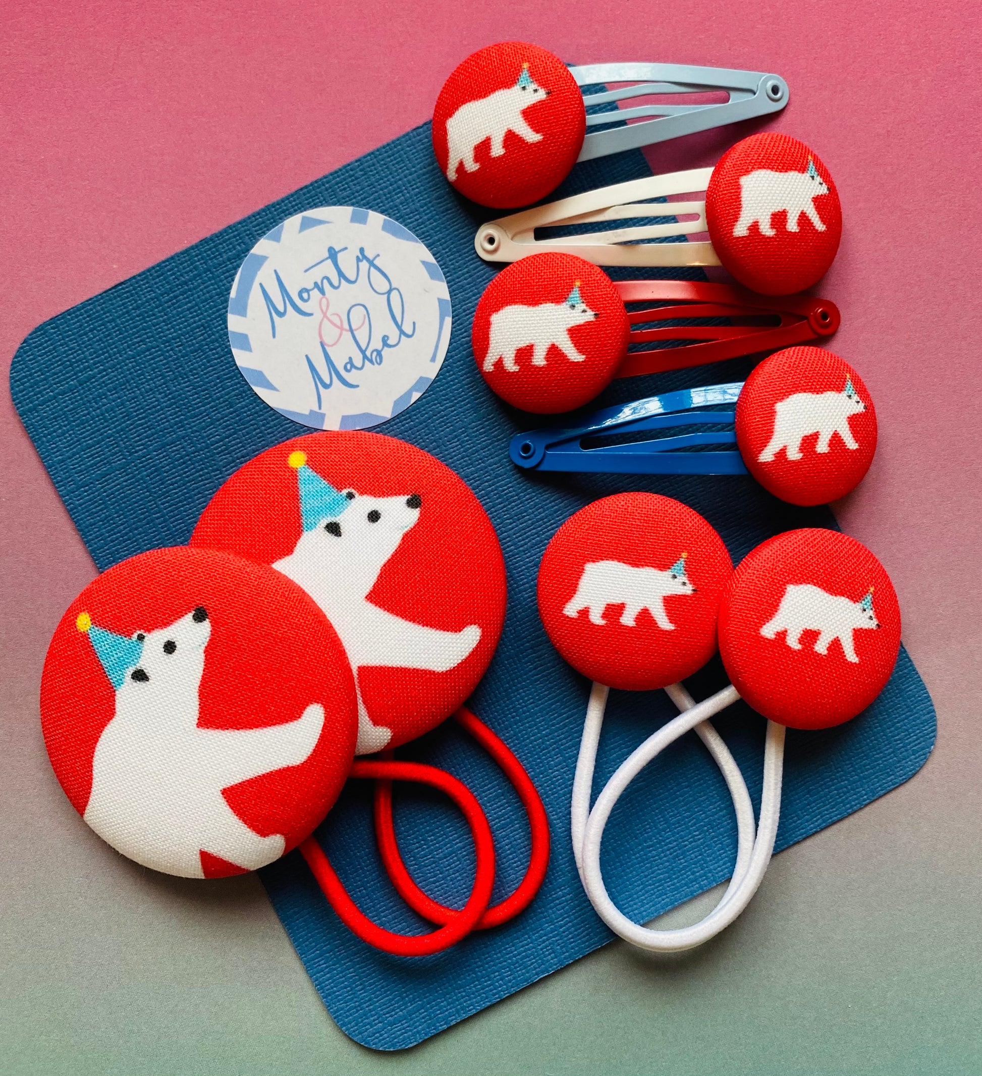 Everything is made to order, if you would like a different coloured clip to the photo please message Monty & Mabel on Facebook or add a note to your order.