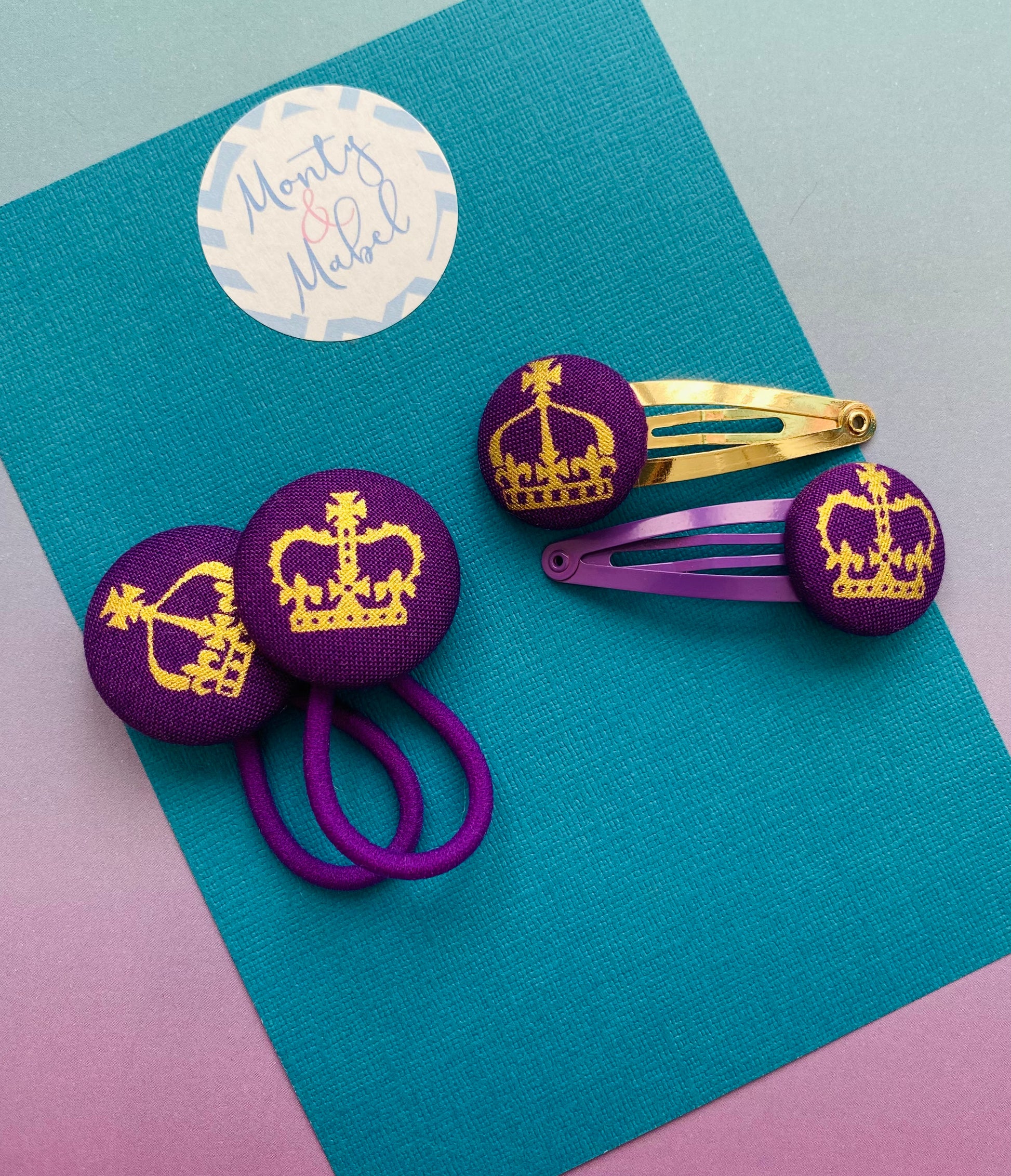 Metallic crowns on a deep rich purple background. They work well in tiny & small bobbles, and tiny and standard clips.