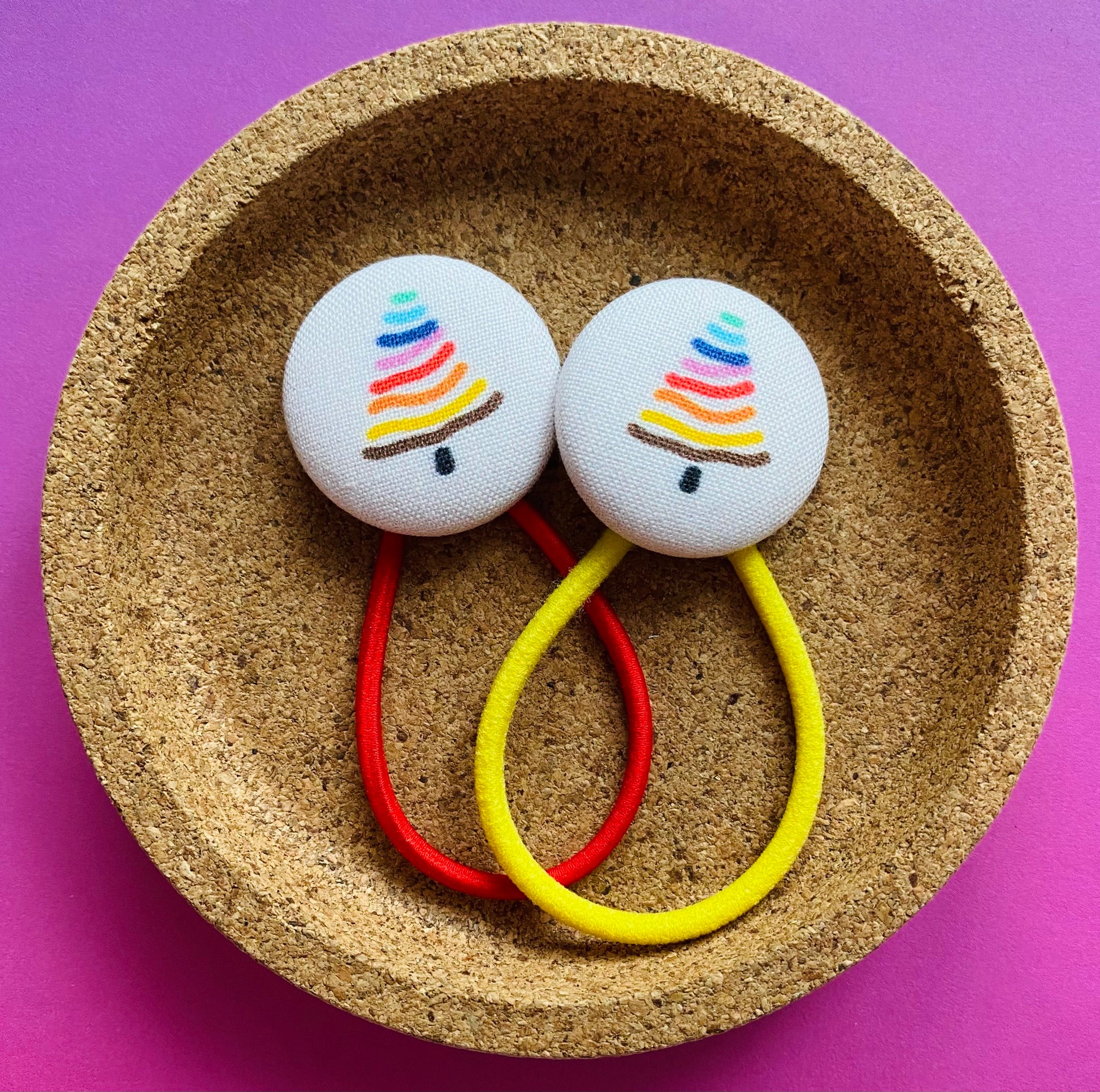 Tiny Bobbles are 22mm on short elastic ties (best for very fine hair)