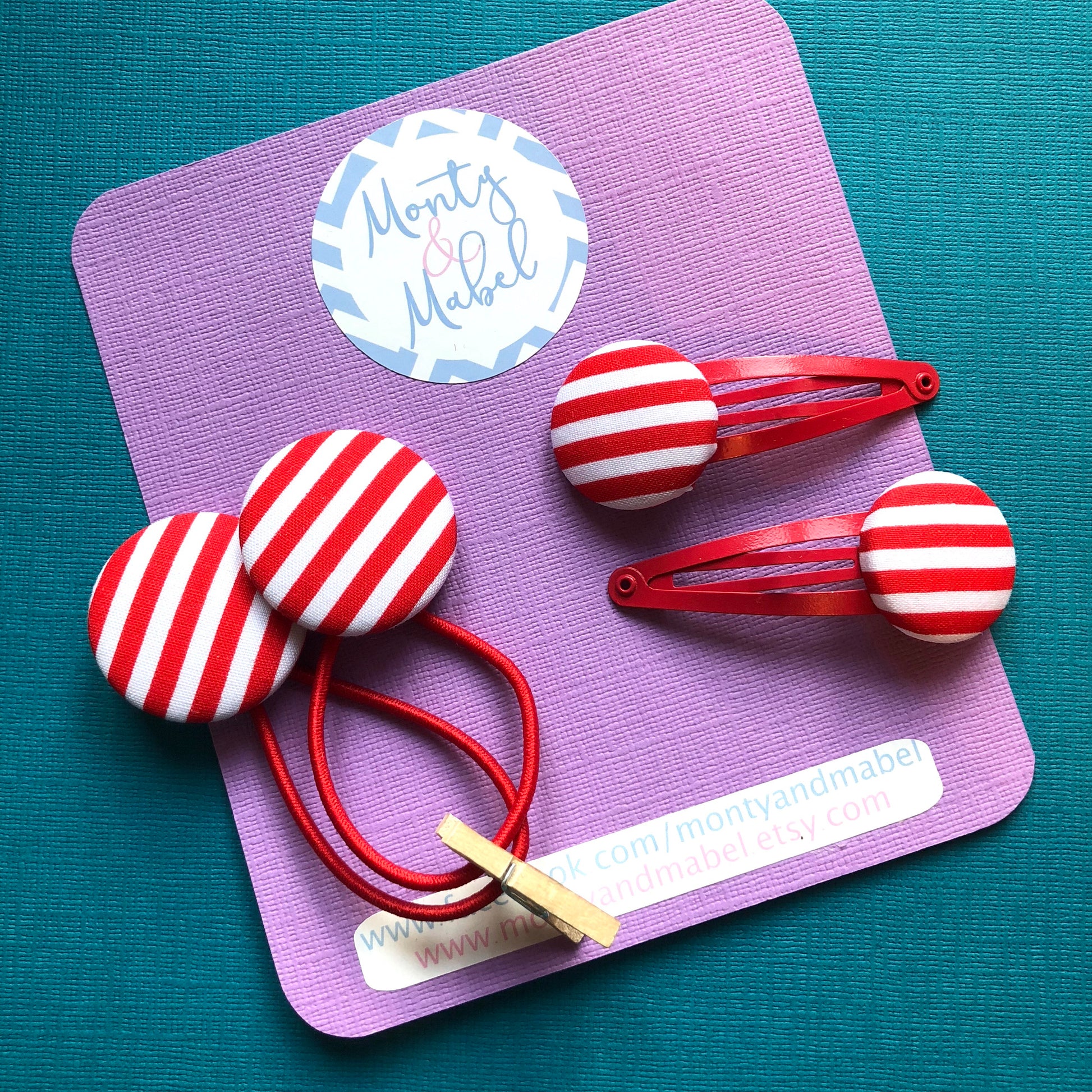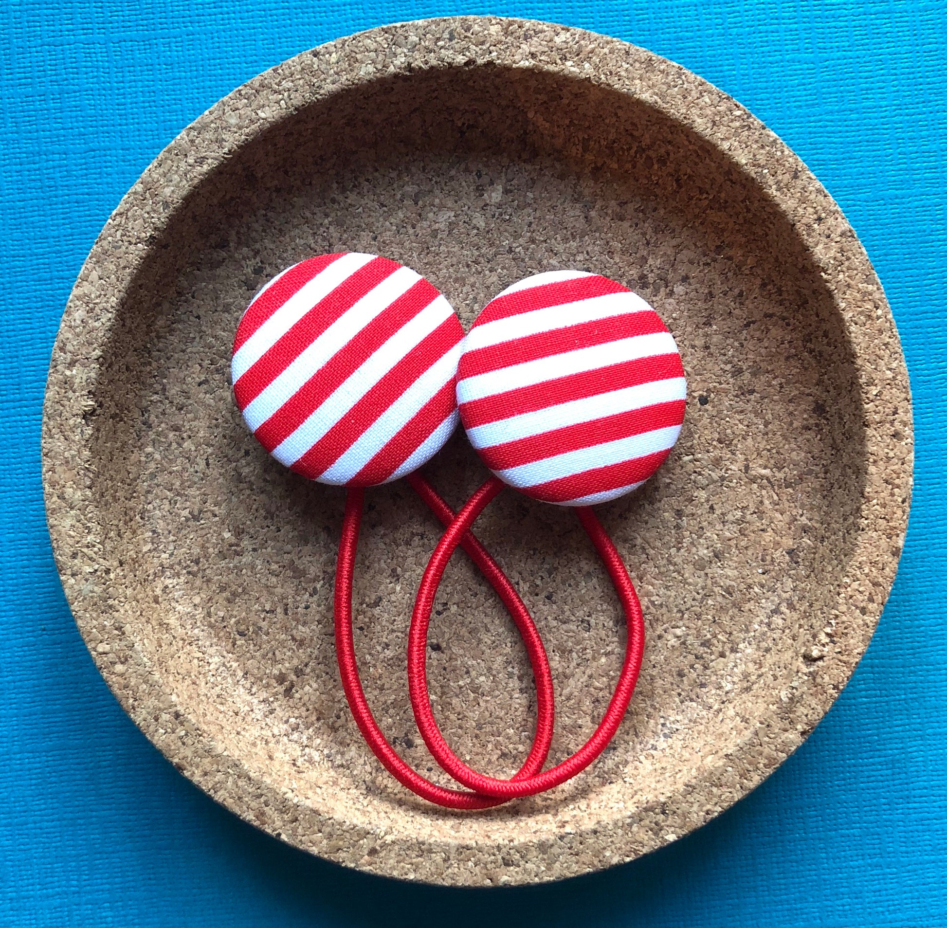 Bold red stripes, which work well in Large Bobbles, Small Bobbles, Standard & Tiny Clips, and all Bow sizes including the Diddy Bow Fringe Clips.