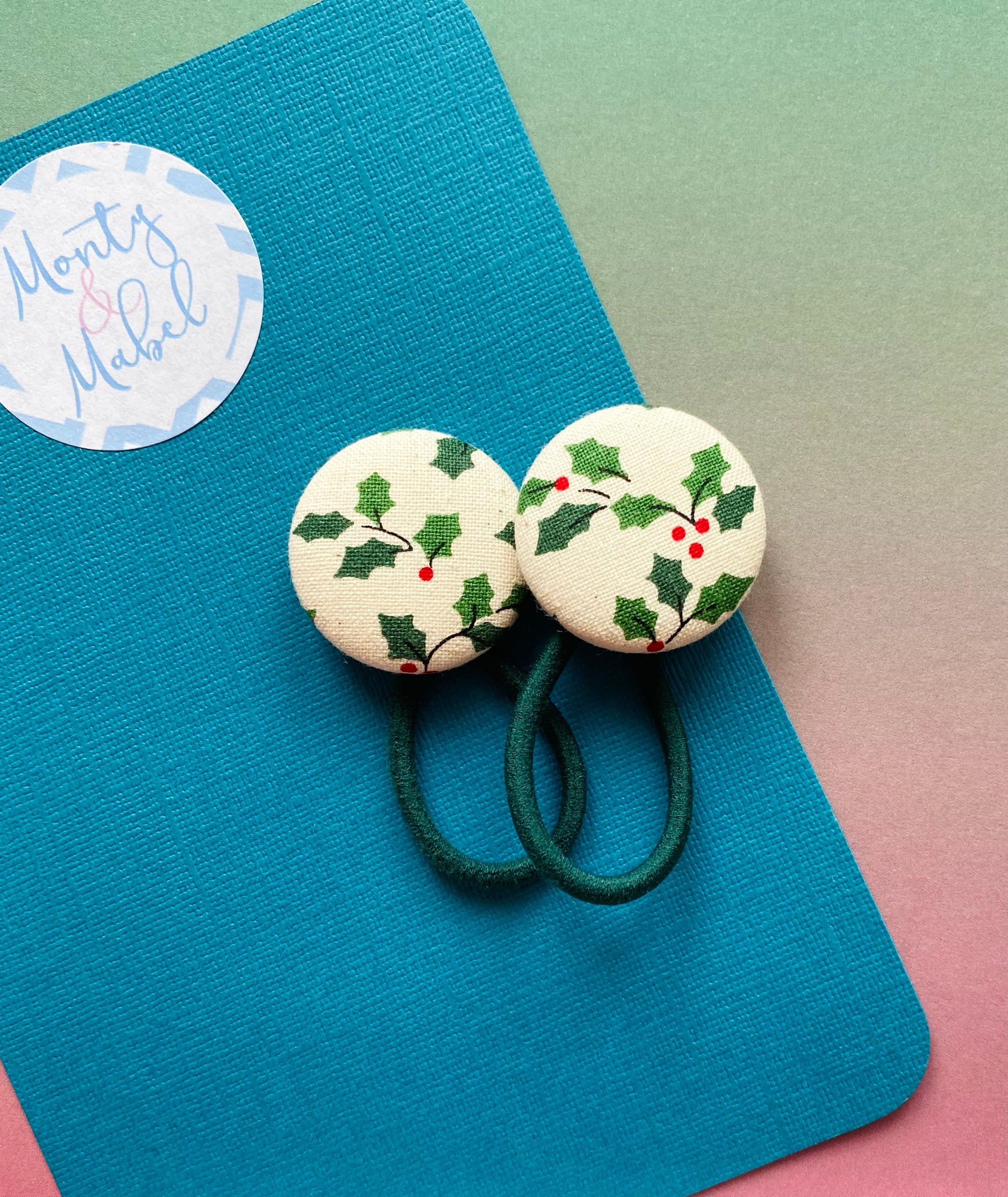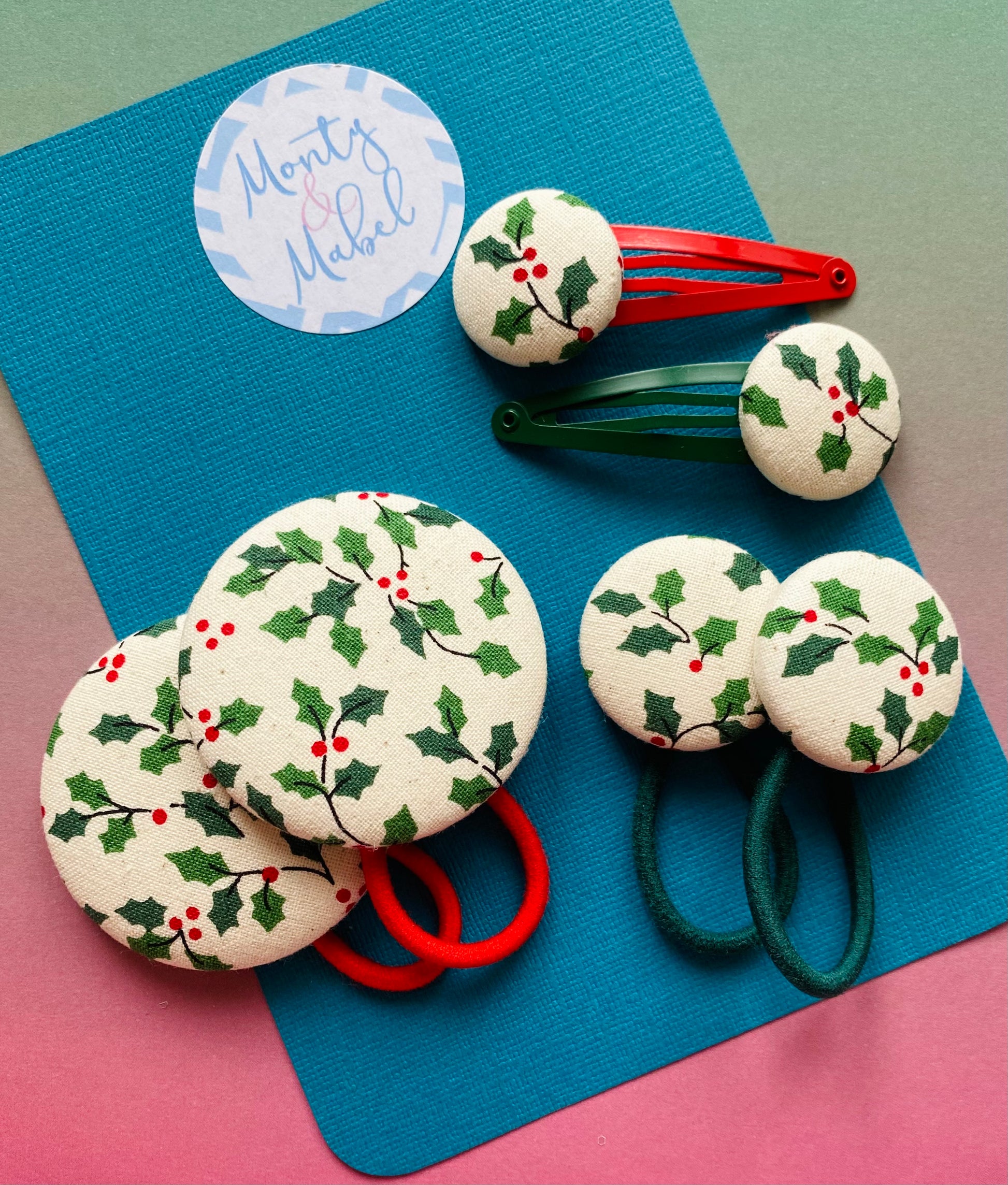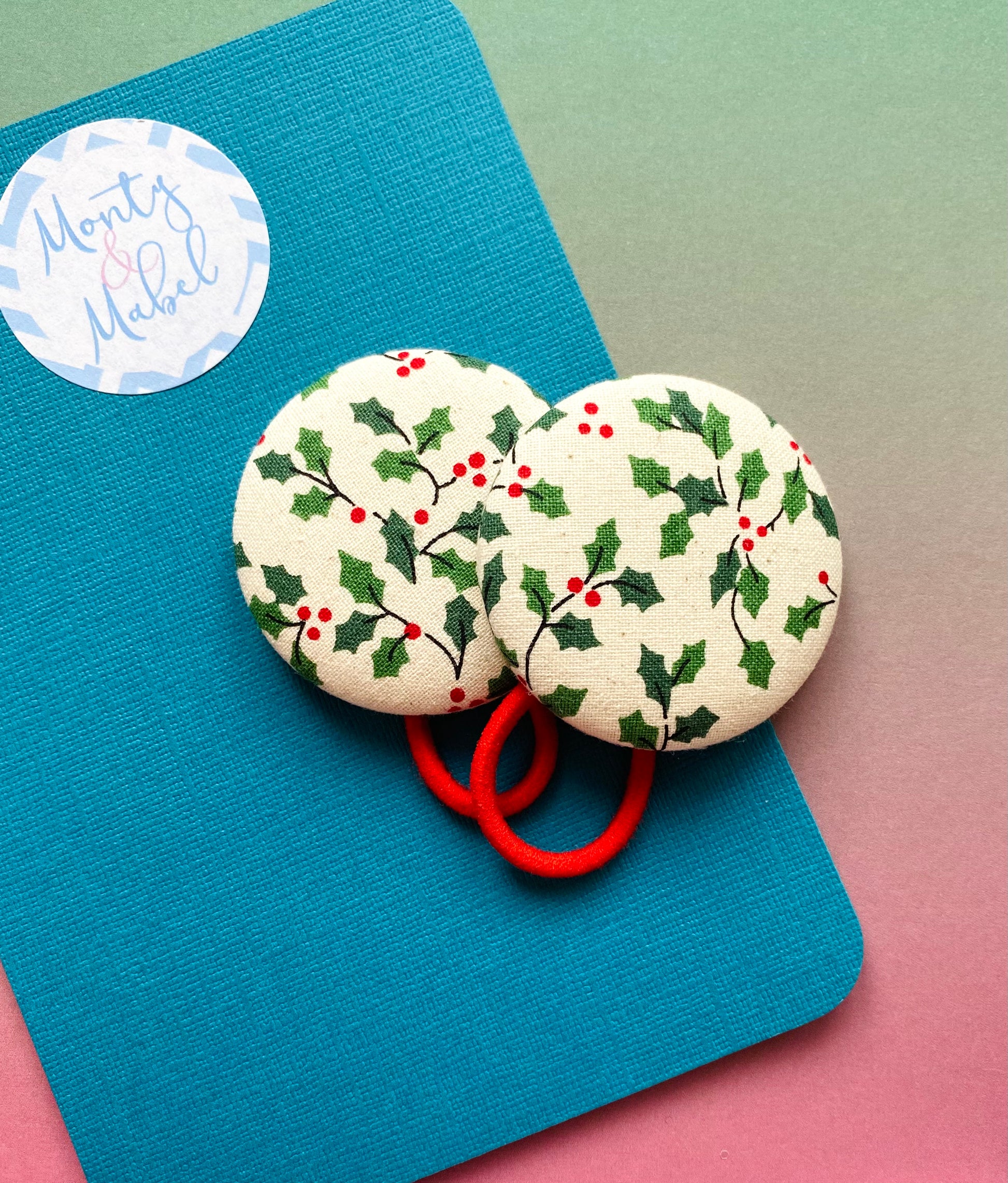 A traditional style holly on a cream flecked background, suitable for all clips & bobble sizes.