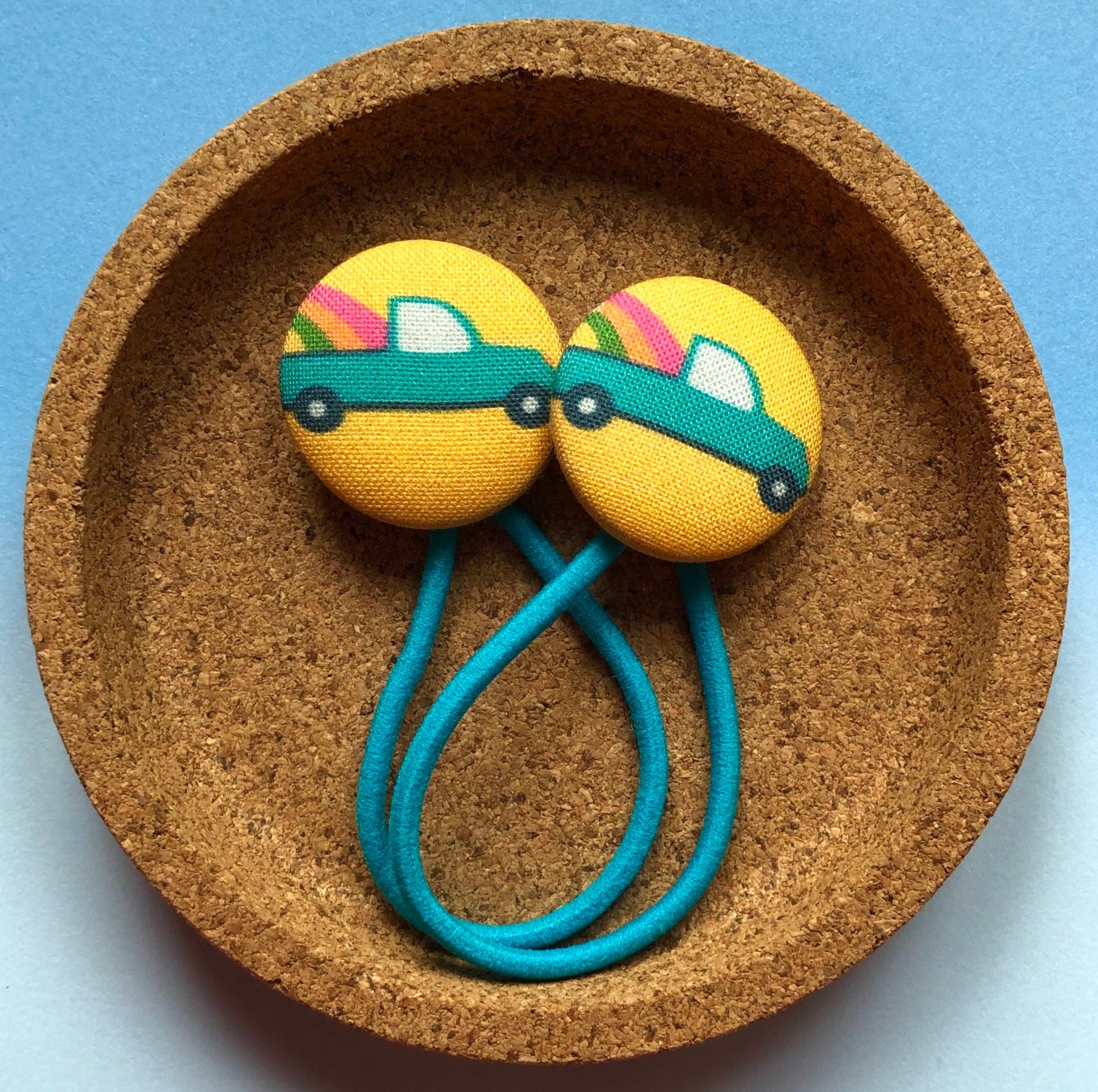Tiny Bobbles are 22mm on short elastic ties (best for very fine hair)